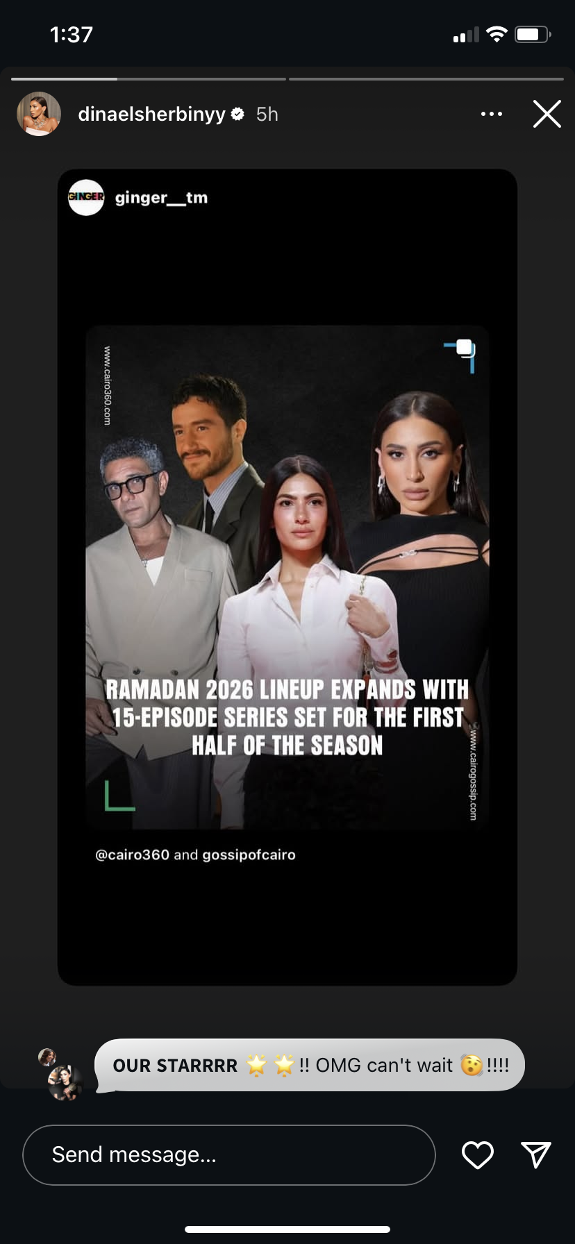 وشاركت الفنانة دينا الشربيني ستوري عبر حسابها علي انستجرام صورا من إعلان لمسلسلها الجديد .