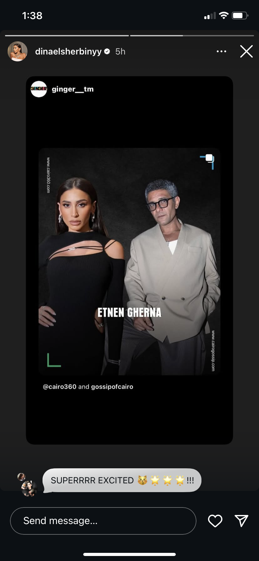 تجاهلت الفنانة دينا الشربيني الزج باسمها في قصة طلاق كريم محمود عبد العزيز وآن الرفاعي وتروج على إنستجرام عن مسلسلها الجديد اتنين غيرنا.