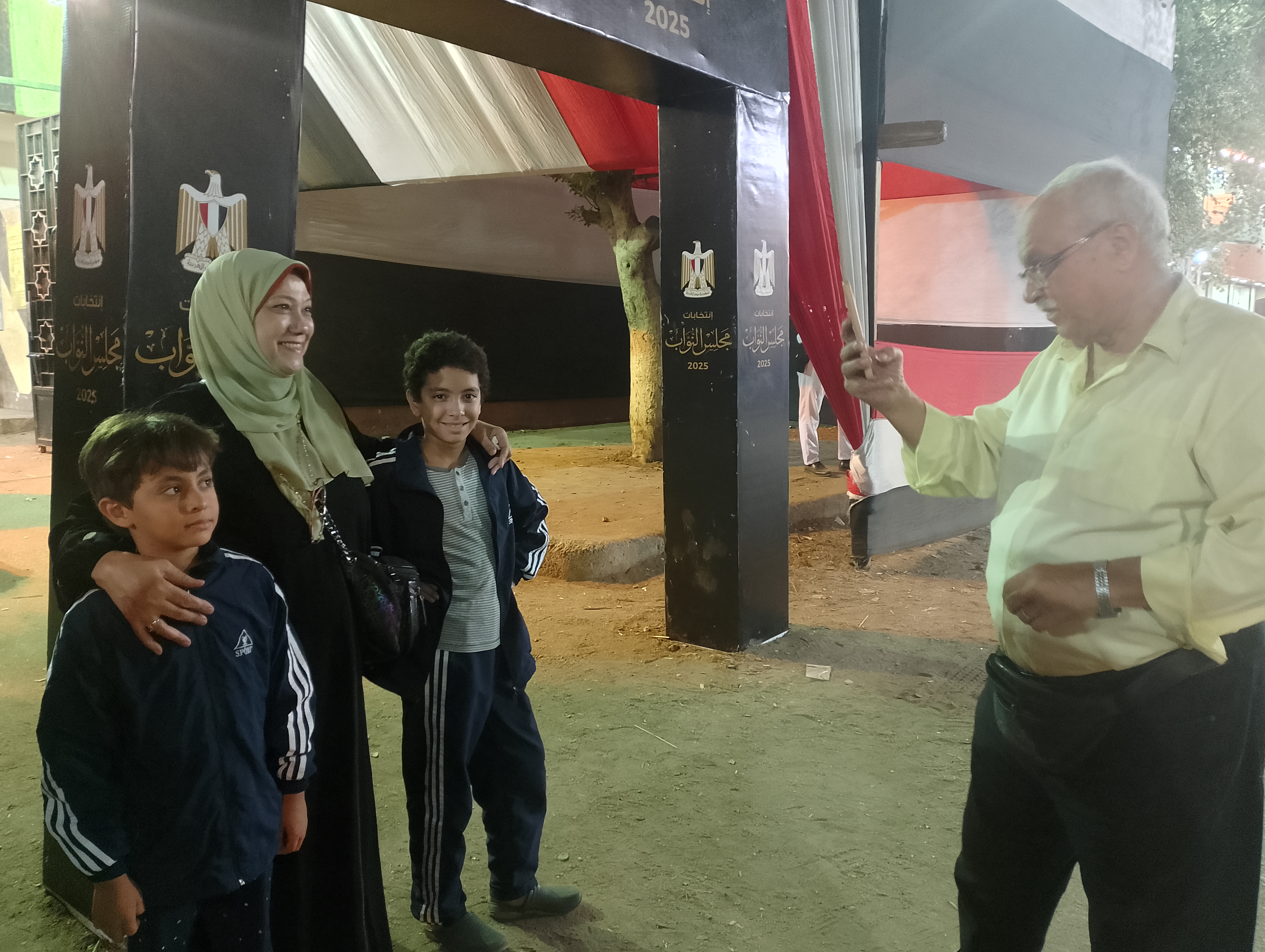 حضرت عائلة للإدلاء بصوتهم في لجنة المعهد الديني بإمبابة، وقد اصطحبوا أطفالهم معهم ليشاركوهم في هذا الحدث.