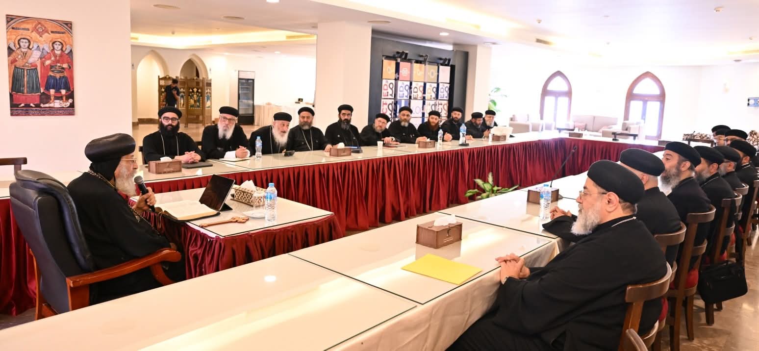 وجعل قداسته الآية "لأَنَّ عَيْنَيِ الرَّبِّ تَجُولاَنِ فِي كُلِّ الأَرْضِ لِيَتَشَدَّدَ مَعَ الَّذِينَ قُلُوبُهُمْ كَامِلَةٌ نَحْوَهُ" (٢أخ ١٦: ٩) موضوع محاضرته للآباء الكهنة، ثم أجاب على أسئلتهم، في لقاء أبوي يسوده المحبة.