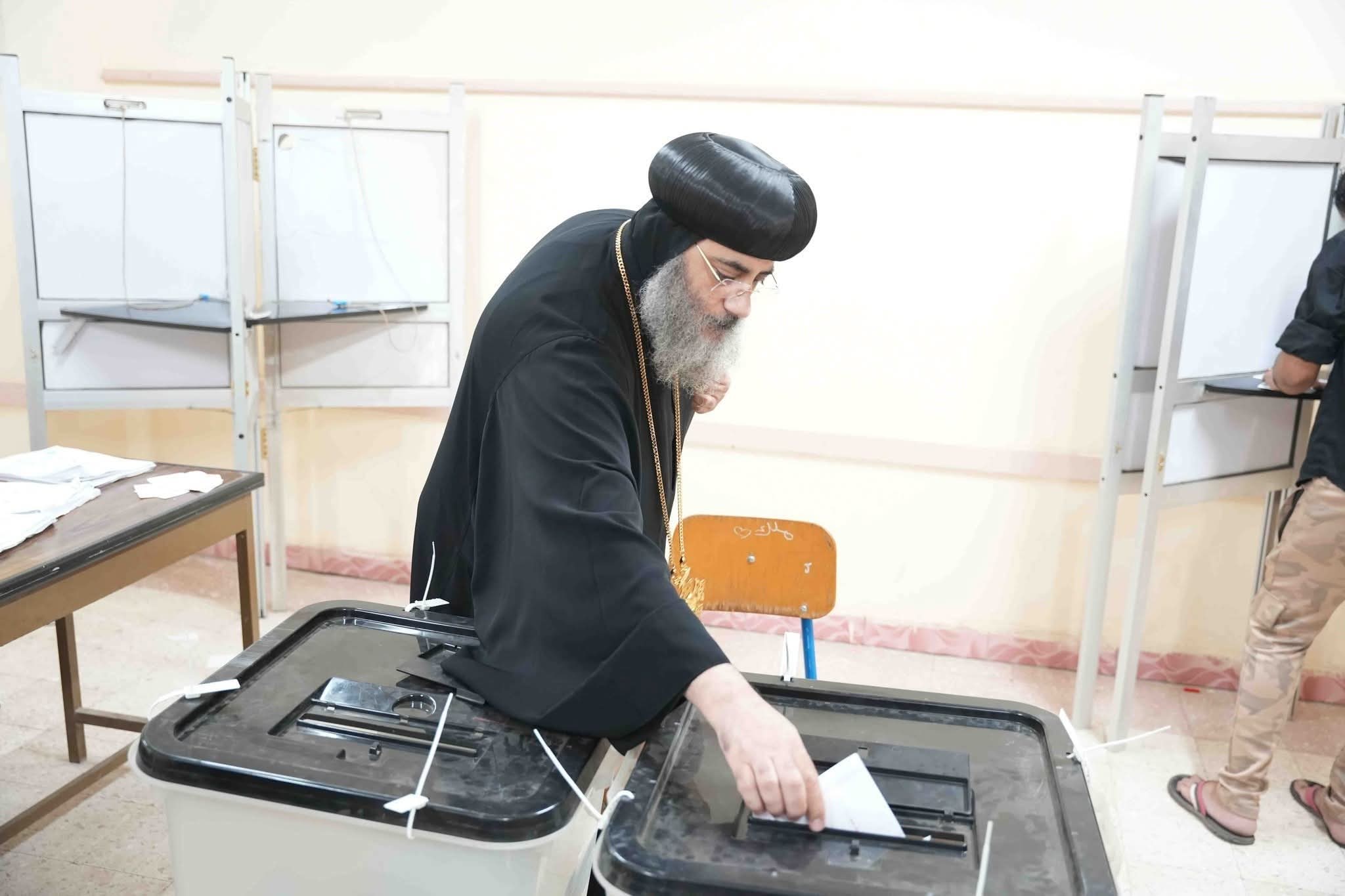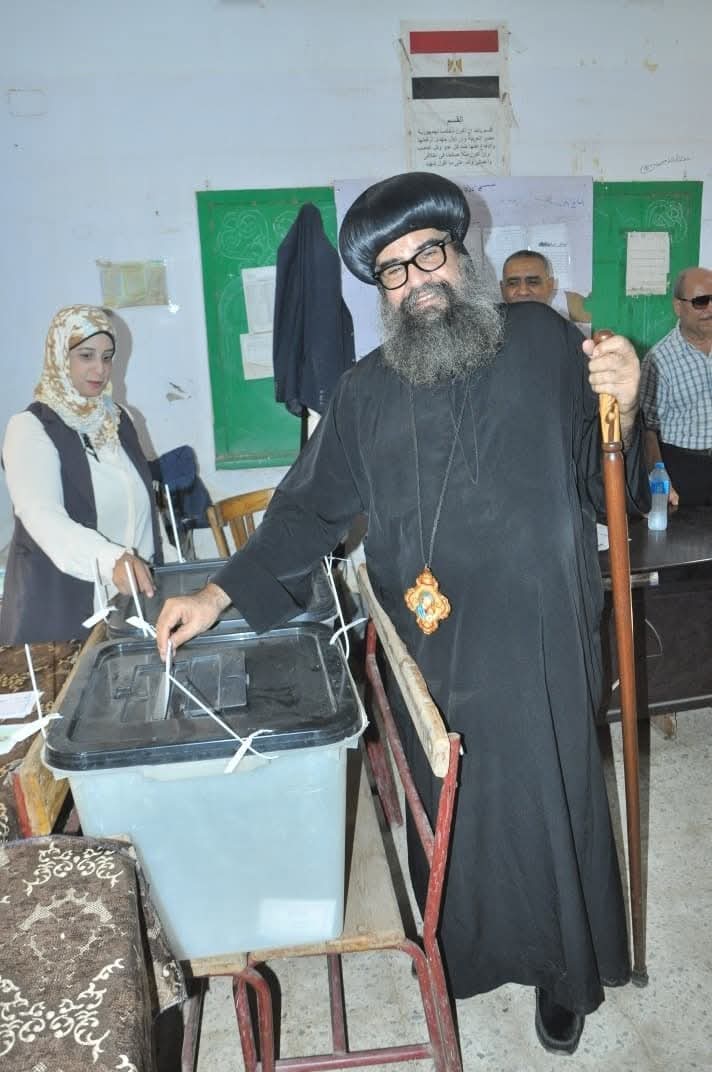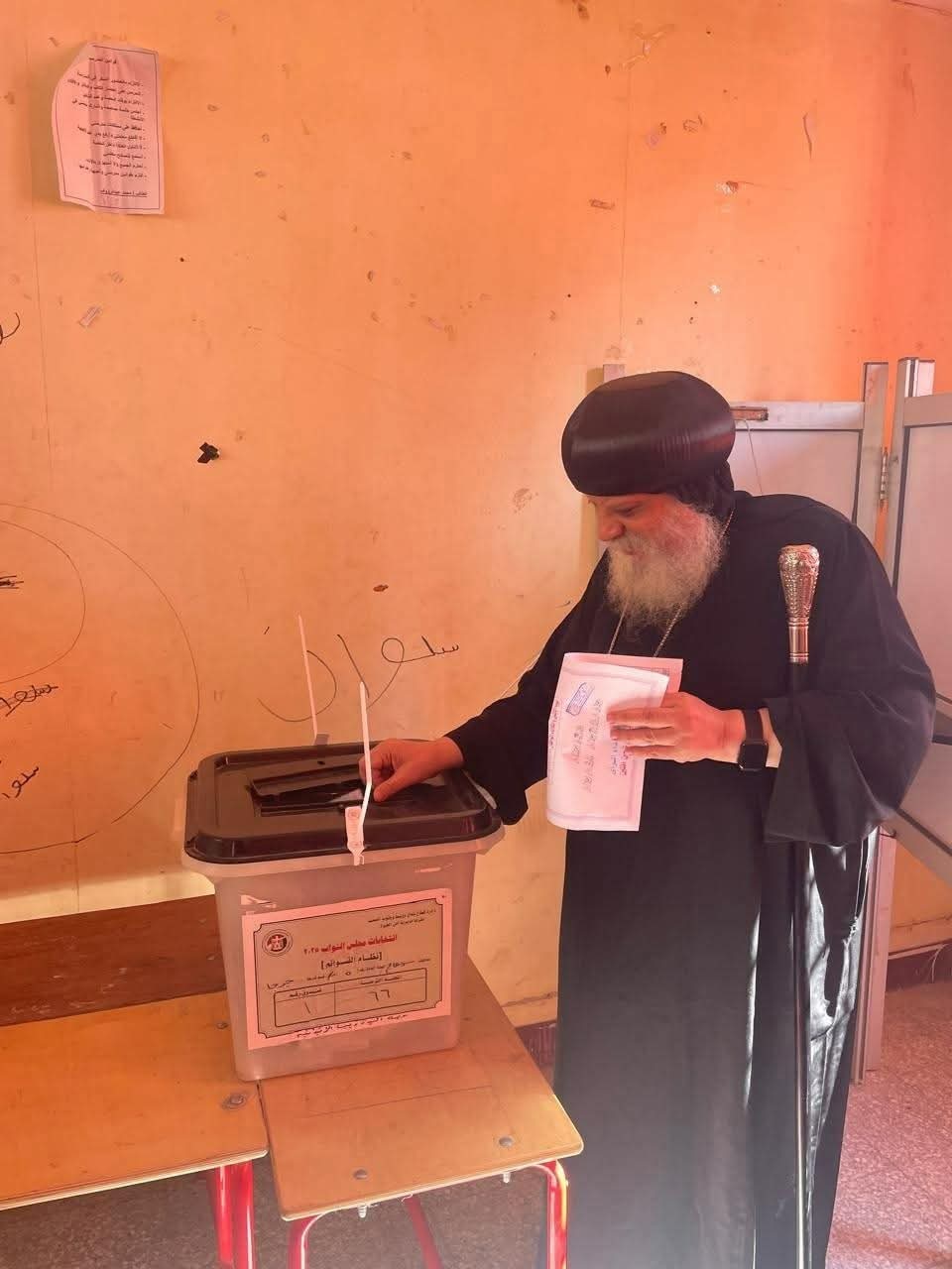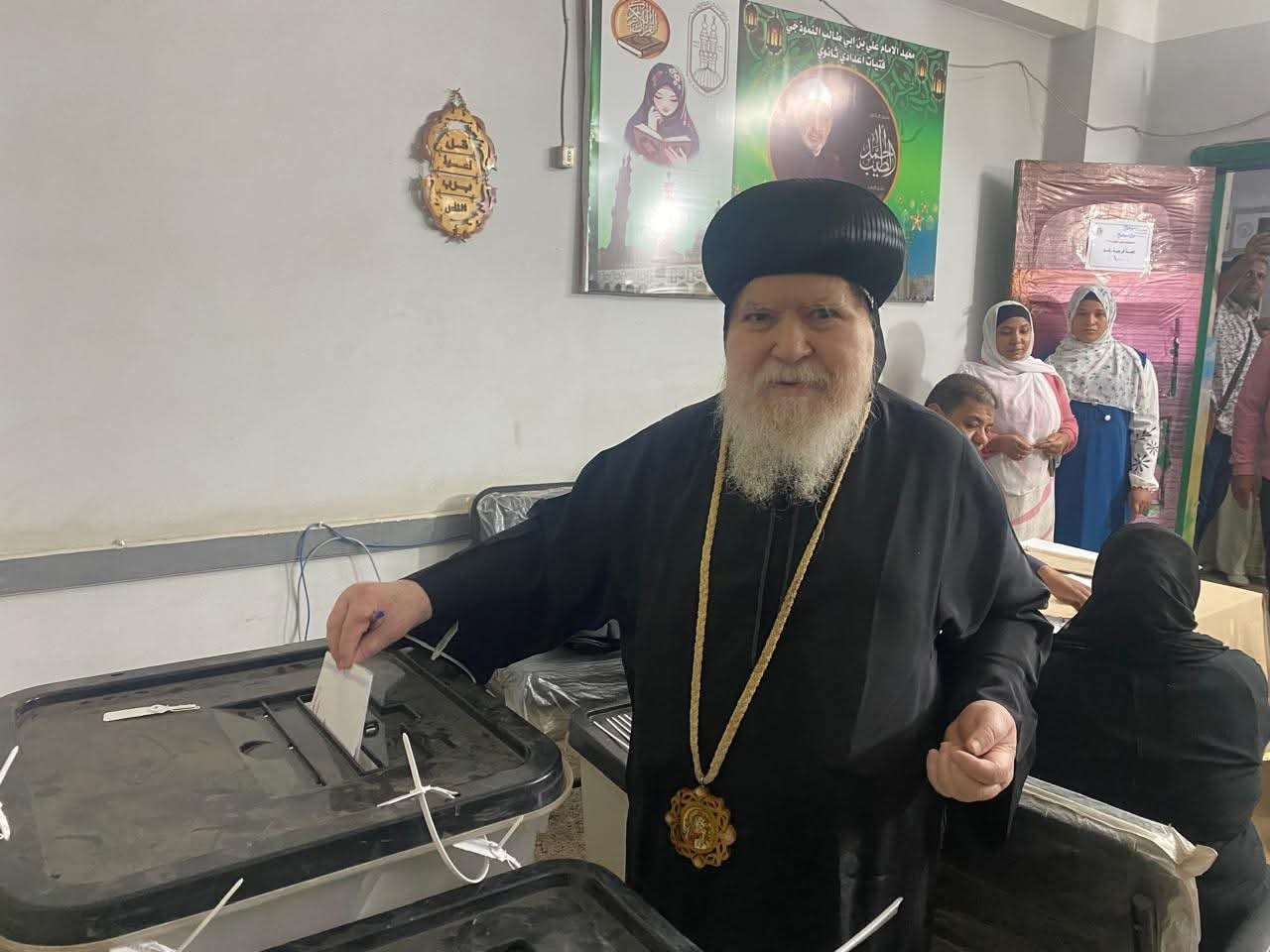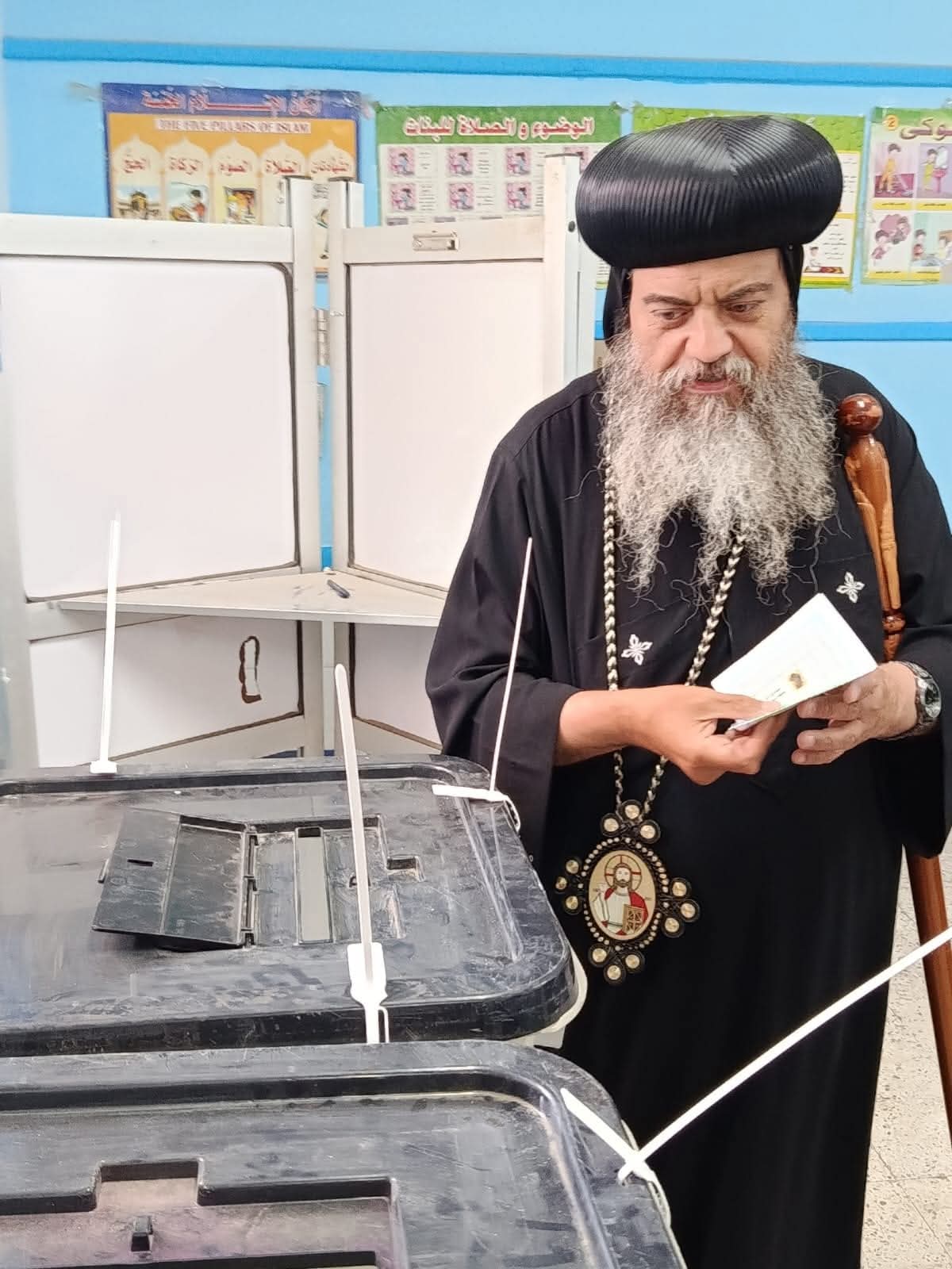 وأدلى نيافة الأنبا باخوم مطران سوهاج والمنشاة والمراغة بصوته، معرباً عن دعمه لمشاركة الجميع في الانتخابات والتأكيد على حقوقهم وواجباتهم.