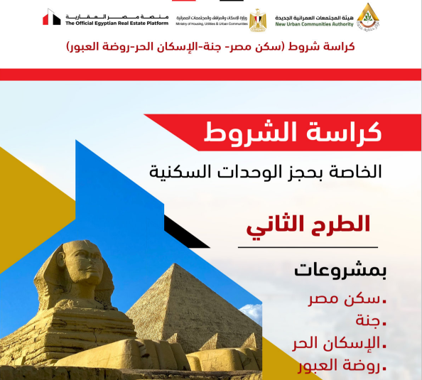 وكشف المهندس شريف الشربيني، وزير الإسكان، عن طرح كراسة الشروط الخاصة بحجز الوحدات السكنية، الطرح الثاني بمشروعات «سكن مصر ـ جنة ـ الإسكان الحر ـ روضة العبور»، بعدد (2986) وحدة سكنية للتخصيص بنظام الحجز الالكتروني، والذى يأتي ضمن ما أعلنته وزارة الإسكان حول طرح 25012 وحدة سكنية، عبر «منصة مصر العقارية»، ويأتي ذلك الطرح ضمن المرحلة الثانية من أكبر طرح سكني مجمع أعدته الوزارة، والذي يتضمن نحو 400 ألف وحدة سكنية على عدة مراحل.