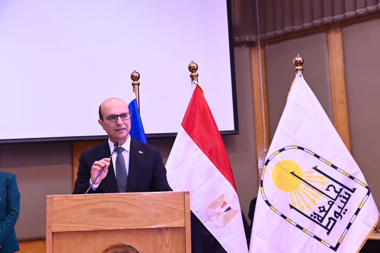 وفي كلمته خلال الجلسة، أكد الدكتور محمد عدوي أن نموذج محاكاة الاتحاد الأوروبي يمثل تجسيدًا عمليًا للشراكة الإستراتيجية الممتدة بين مصر والاتحاد الأوروبي، مشيرًا إلى توافق الجانبين في عدد من القضايا المحورية، وفي مقدمتها السلم والأمن والقضية الفلسطينية.