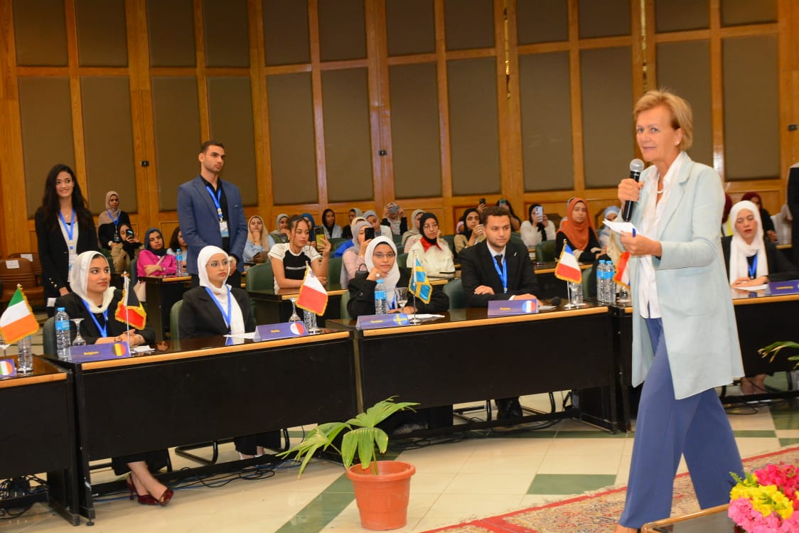 ومن جانبها، أعربت السفيرة أنجلينا إيخورست عن سعادتها البالغة بأداء طلاب جامعة أسيوط خلال الجلسة، مشيدة بالتزامهم بالبروتوكولات الرسمية ودقة ترتيب الجلسات، وتناغم الخطابات بين ممثلي الدول المختلفة.