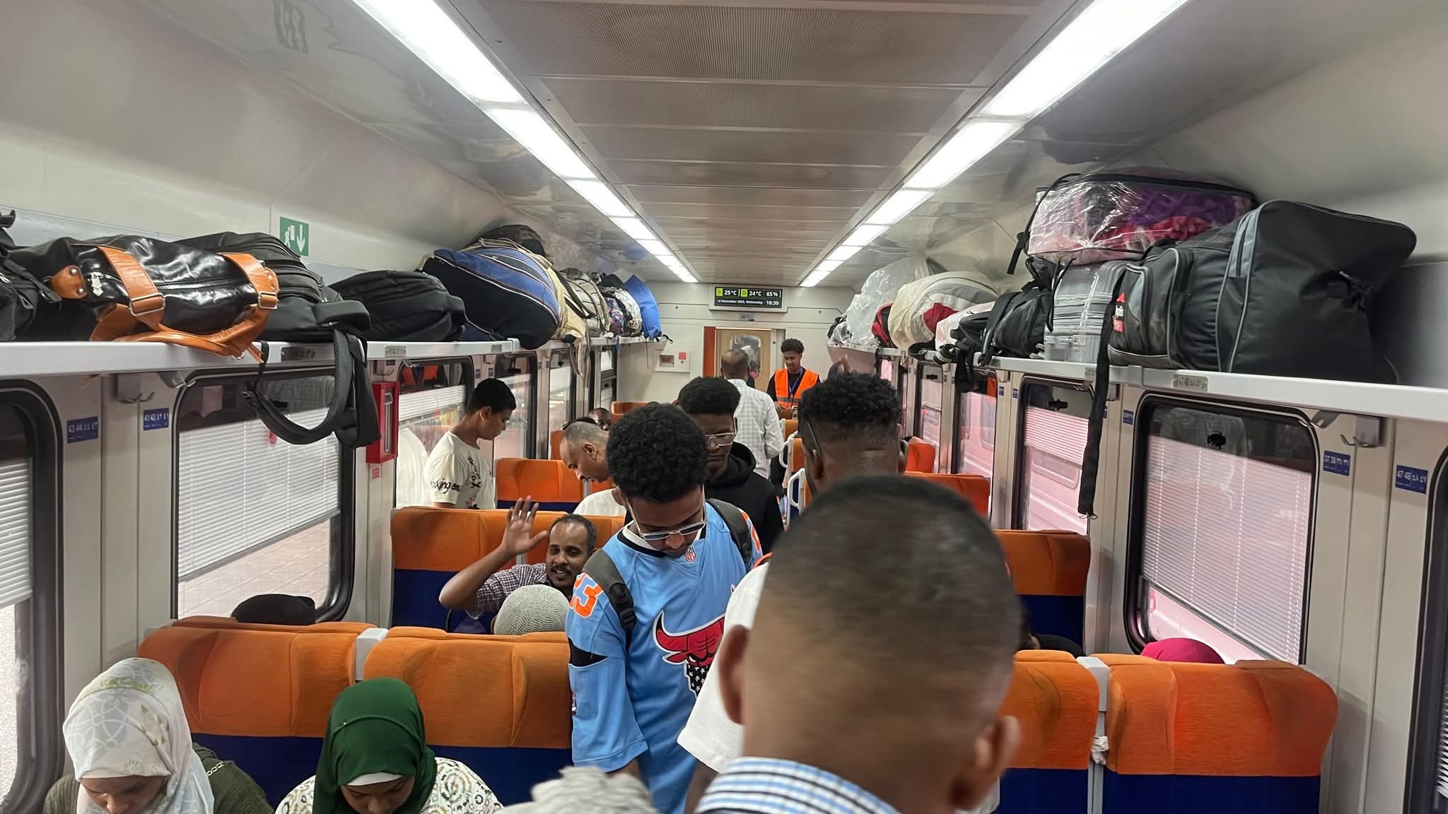 انطلقت صباح اليوم الأربعاء الموافق 12 نوفمبر 2025 من محطة مصر برمسيس، الرحلة الثانية والثلاثين من القطارات المخصصة لنقل الاشقاء السودانيين العائدين لوطنهم ضمن مشروع "العودة الطوعية " والذين وصل عددهم الى 30.432 راكبًا، عبر قطارات الهيئة القومية لسكك حديد مصر .