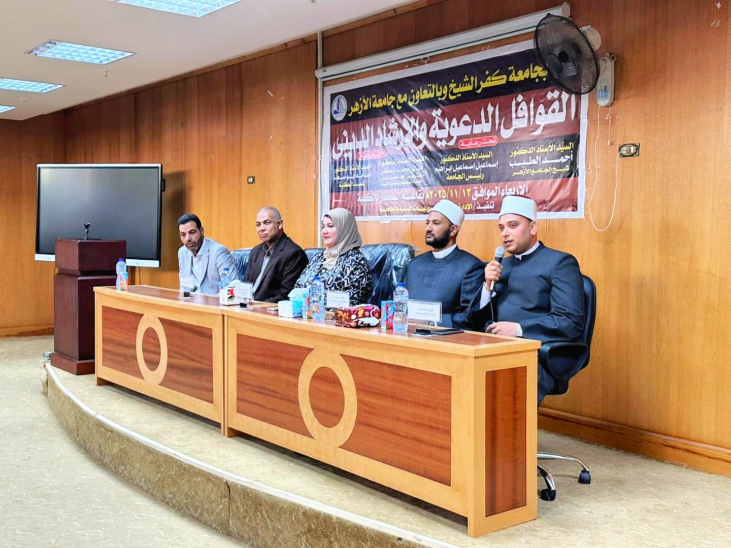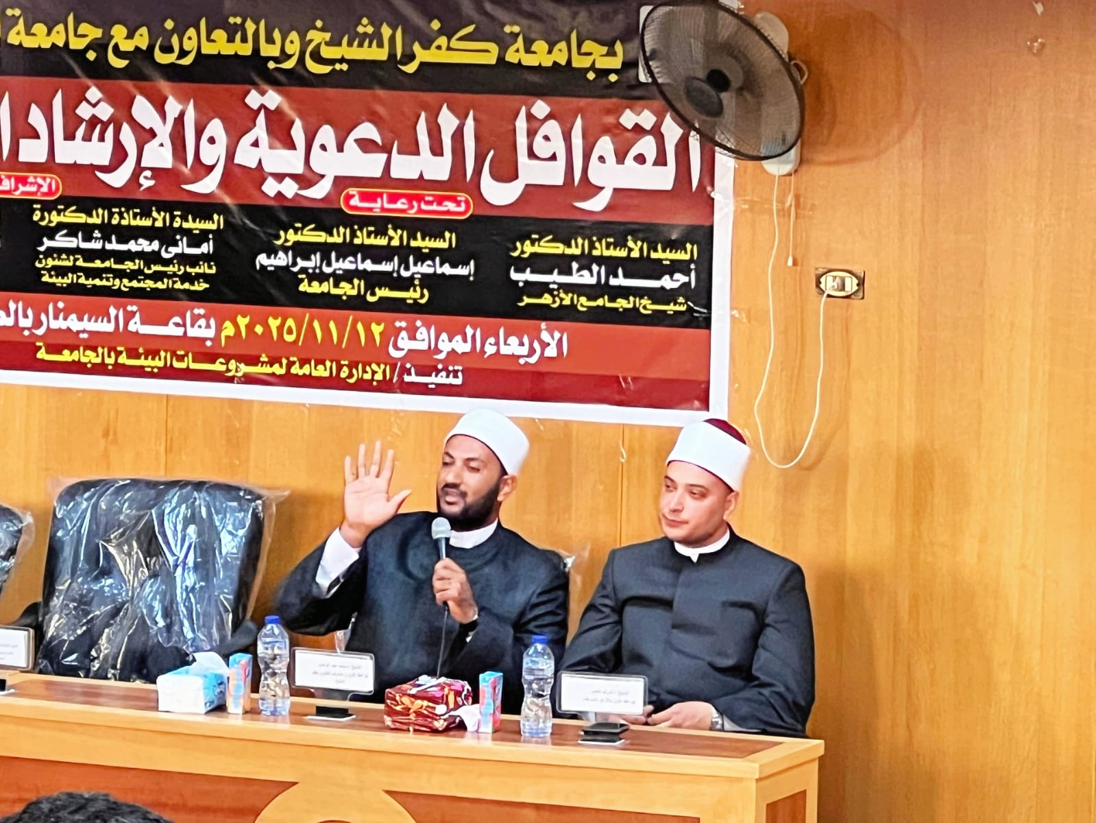 يأتي هذا في إطار التعاون المثمر بين الأزهر الشريف وجامعة كفر الشيخ، وبرعاية كريمة من فضيلة الإمام الأكبر الأستاذ الدكتور أحمد الطيب شيخ الأزهر الشريف، والدكتور إسماعيل القن، رئيس الجامعة، والدكتورة أماني محمد شاكر، نائب رئيس الجامعة لشئون خدمة المجتمع وتنمية البيئة، وبتوجيهات من الدكتور محمد عبد الدايم الجندي، الأمين العام لمجمع البحوث الإسلامية، والدكتور محمود الهواري، الأمين العام المساعد بمجمع البحوث الإسلامية.
