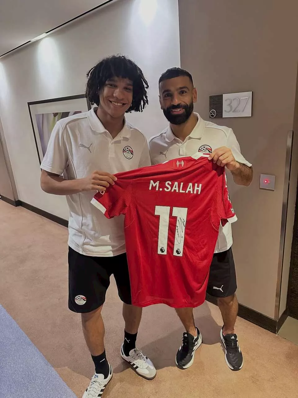 أهدى محمد صلاح لاعب ليفربول الإنجليزي، الثنائي المنضم حديثا إلى منتخب مصر، محمد إسماعيل مدافع الزمالك ومروان عثمان لاعب سيراميكا كليوباترا، قميص فريقه.
