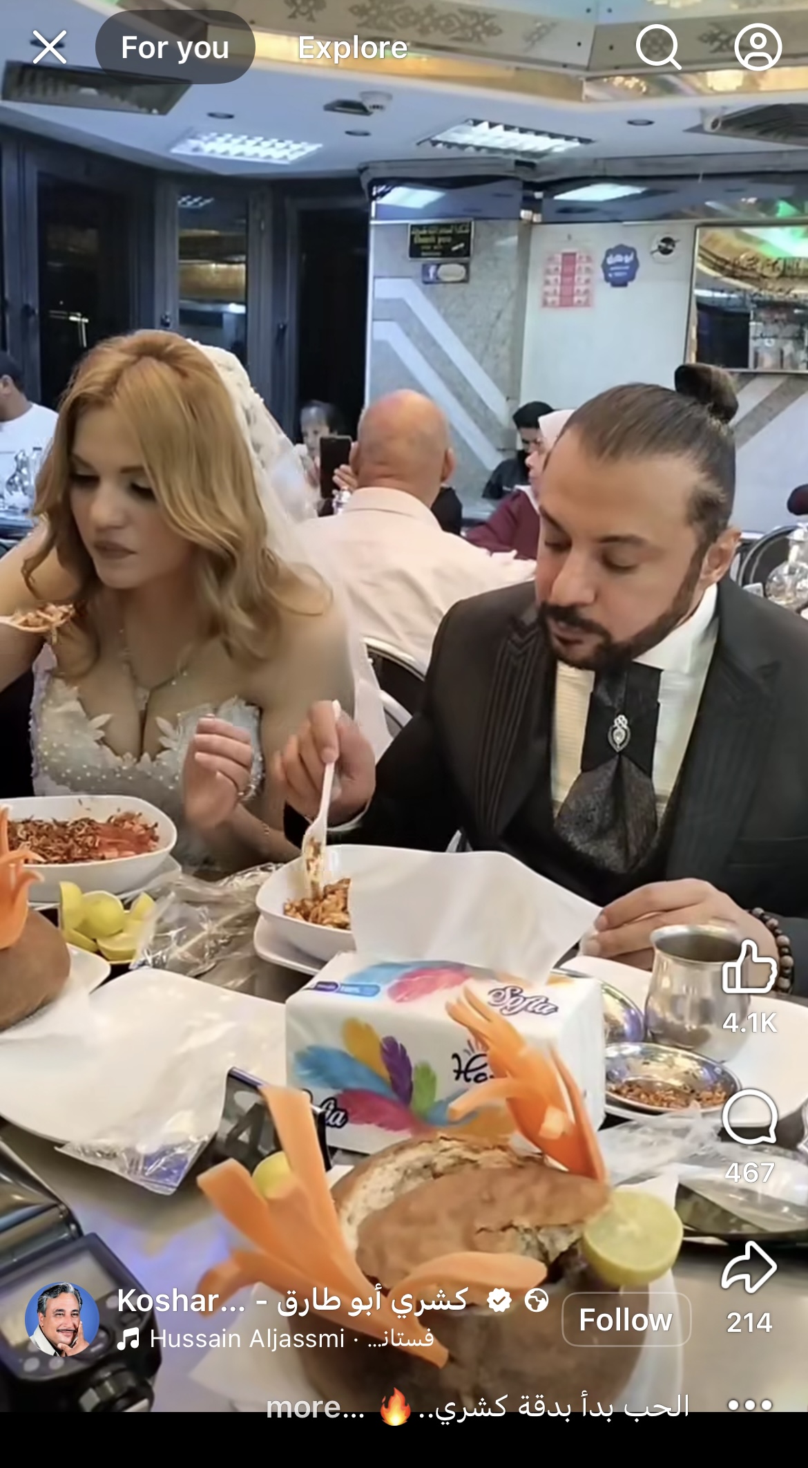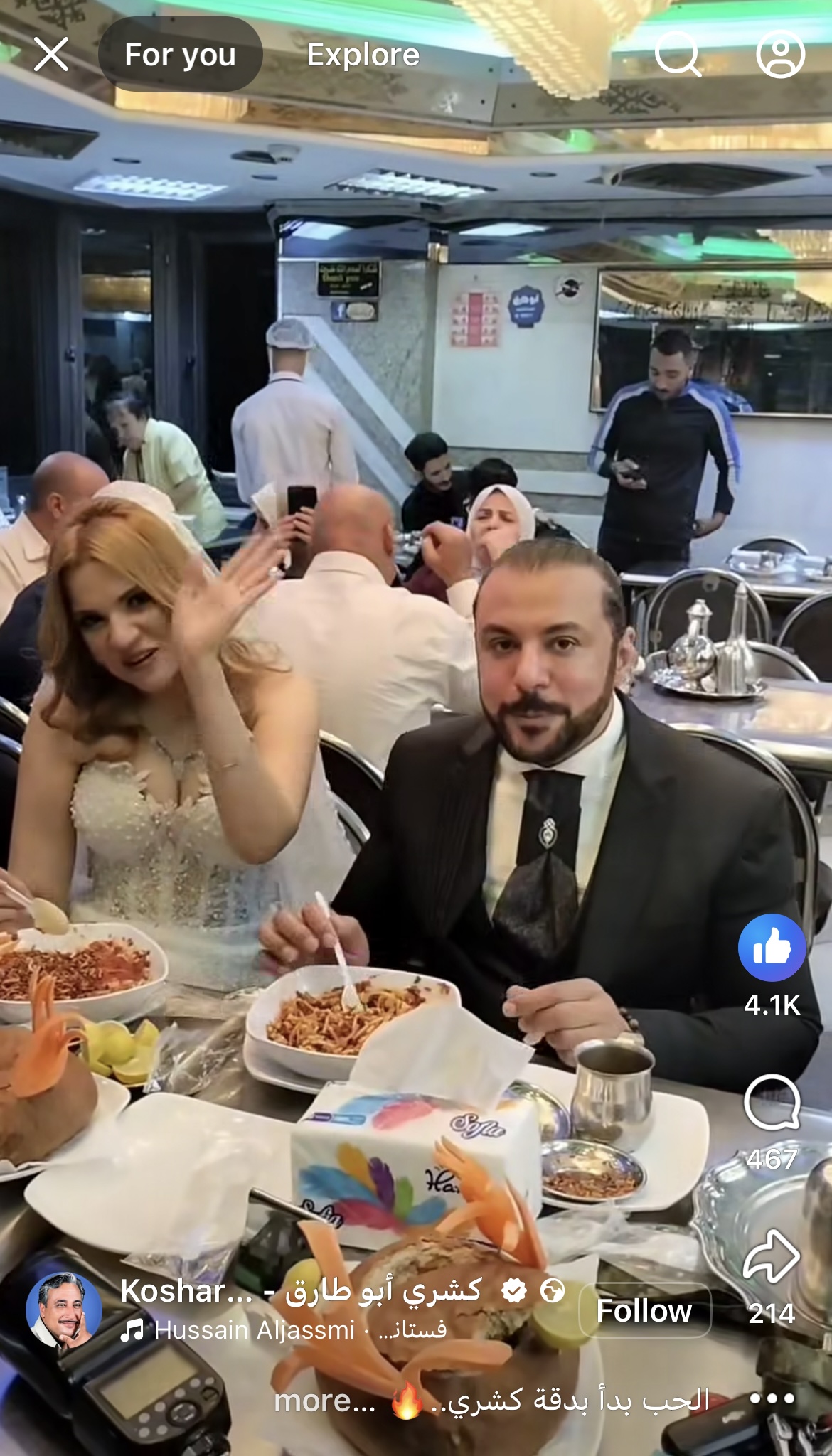احتفال ثنائي بزواجهم داخل محل كشري أبو طارق، في أجواء مميزة مختلفة حرصا على مشاركتها على مواقع التواصل الاجتماعي.