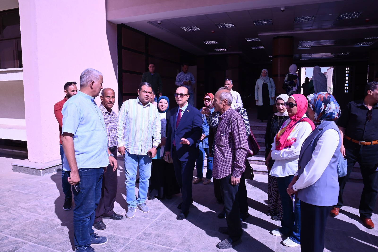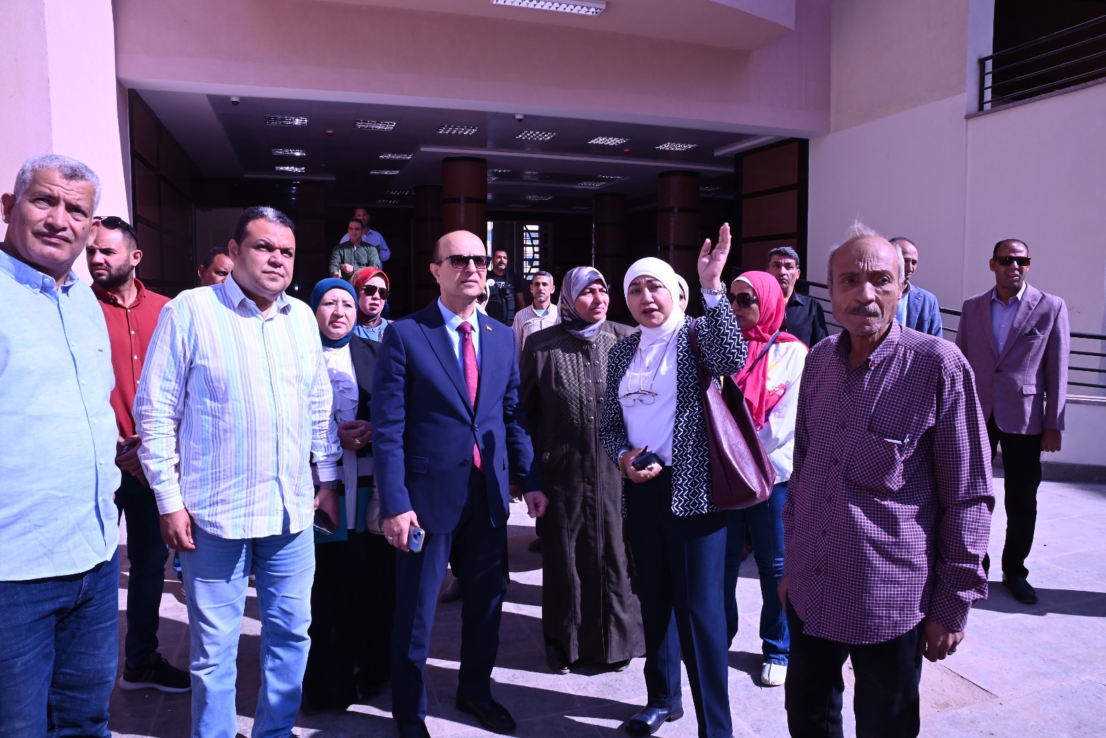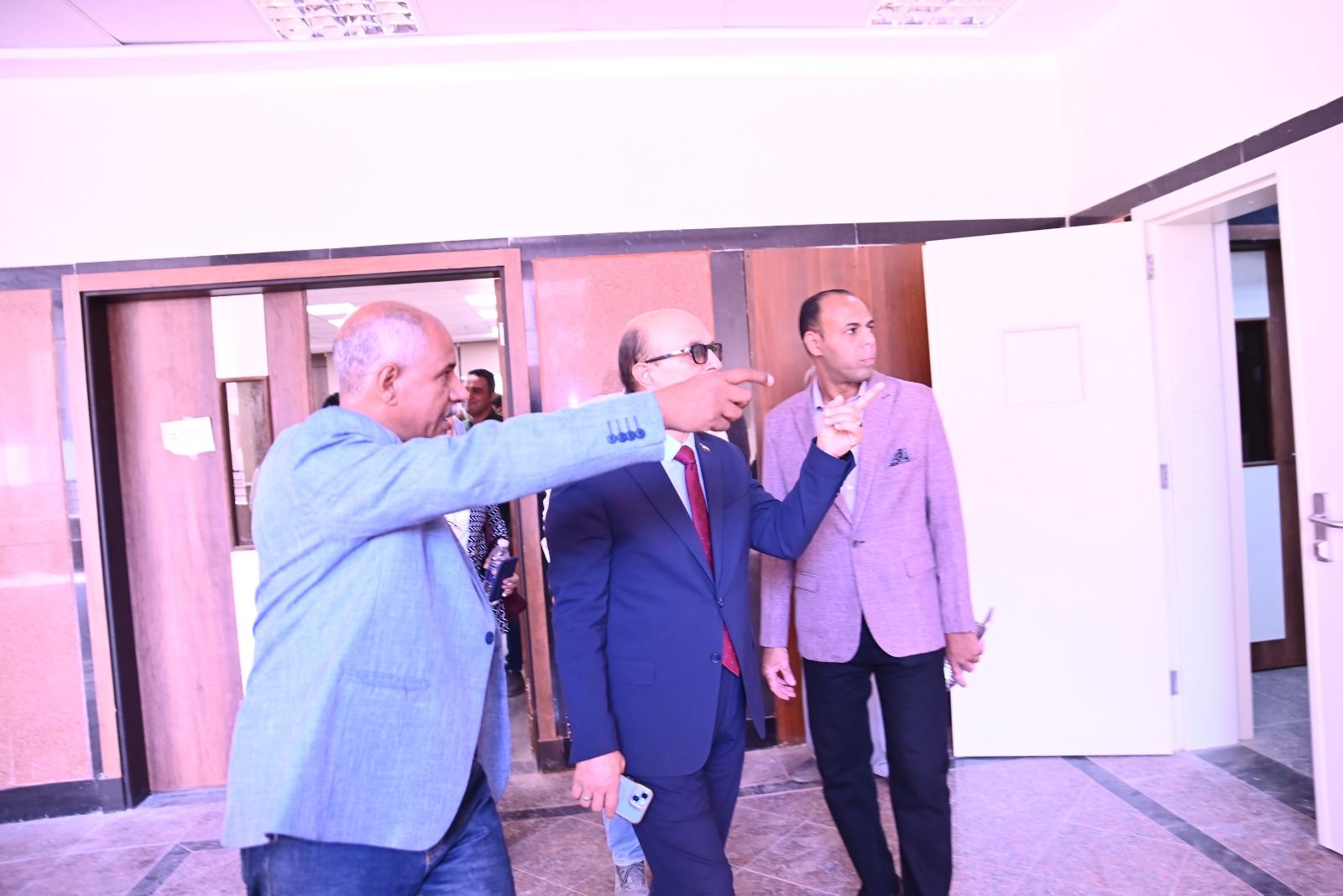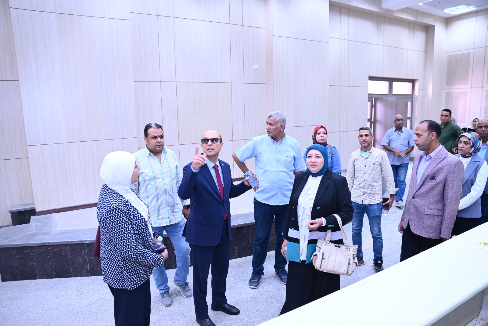 واستمع الدكتور المنشاوي خلال جولته إلى عرض تفصيلي من الدكتور شحاتة الضبع، المستشار الهندسي، حول الموقف التنفيذي للمباني، والتي تشمل مبنى المعامل، والمدرجات الغربية والشرقية، والمبنى التعليمي، حيث اطّلع على نسب الإنجاز وأعمال التشطيبات والفرش والتجهيزات الفنية بكل مبنى.