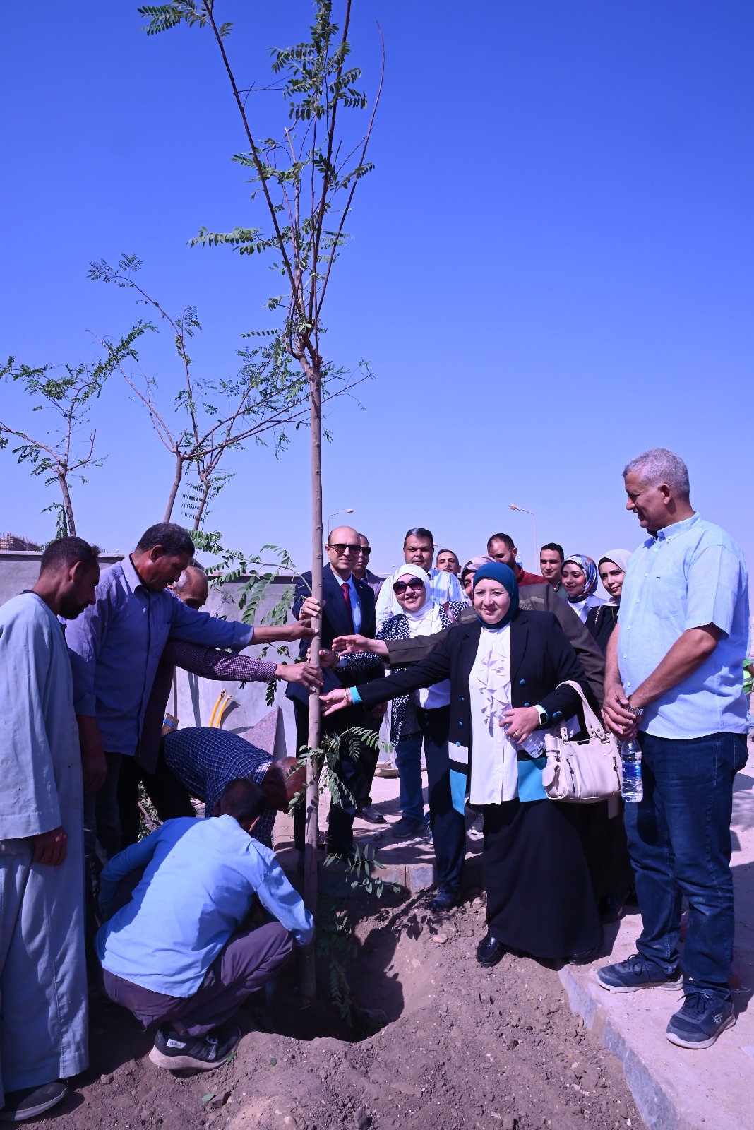وفي بادرة رمزية تؤكد اهتمام الجامعة بالاستدامة والبيئة الخضراء داخل منشآتها الجديدة، قام الدكتور أحمد المنشاوي بزراعة شجرة داخل حرم الكلية إيذانًا ببدء تنفيذ خطة التشجير ضمن أعمال تنسيق الموقع العام.