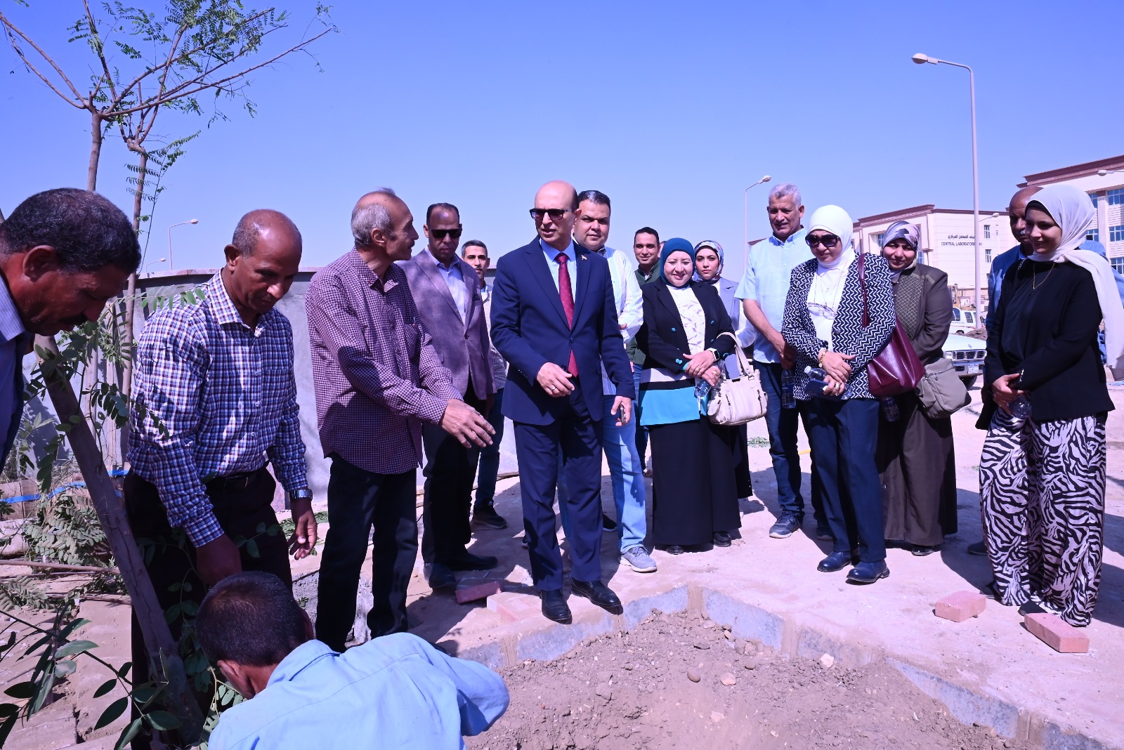 كما تابع الدكتور المنشاوي أعمال تجهيز الموقع العام للكلية، التي تتضمن رصف الطريق الداخلي المؤدي إليها لتيسير حركة الطلاب والعاملين، إلى جانب أعمال التشجير والتجميل للمساحات المحيطة والمناطق الداخلية بالكلية، بما يحقق بيئة تعليمية متكاملة تجمع بين الجمال والاستدامة وترشيد استهلاك الطاقة.