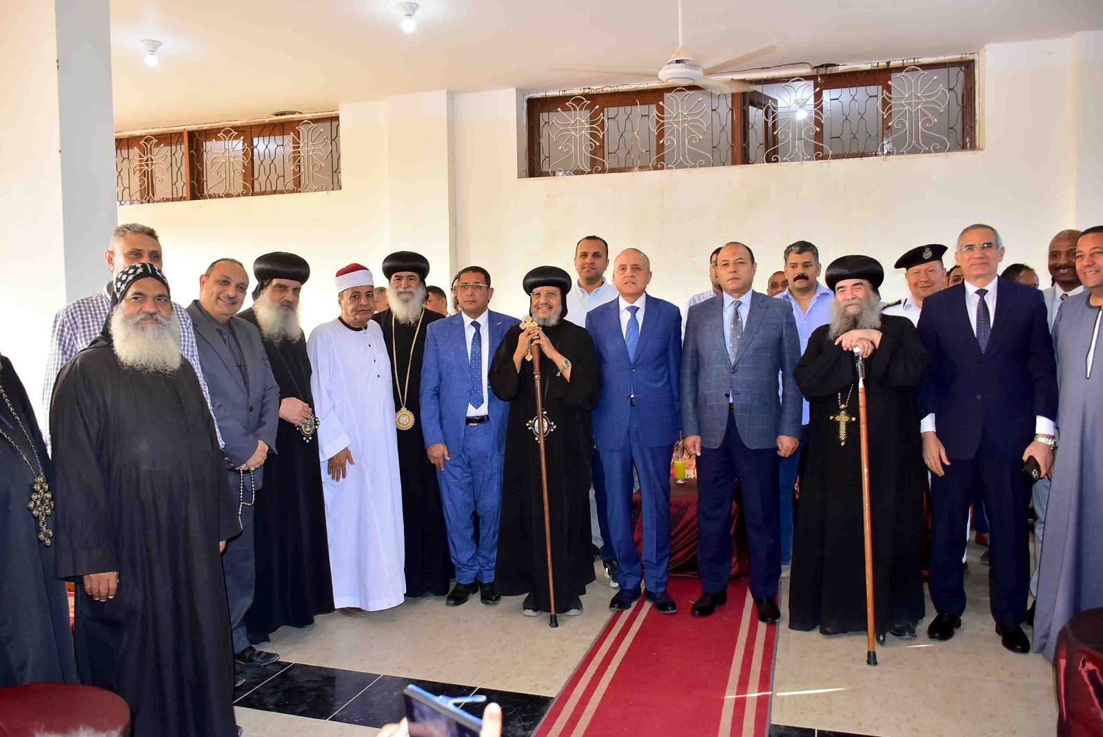 ورافق محافظ الأقصر خلال الزيارة وفد رفيع من القيادات التنفيذية والأمنية، ضم اللواء محمد أبو الليل مساعد وزير الداخلية لمنطقة جنوب الصعيد، واللواء محمد الصاوي مدير أمن الأقصر، واللواء جميل حسن حكمدار المديرية، ورؤساء المراكز والمدن، وعدداً من القيادات التنفيذية والشعبية ومديري الإدارات والمؤسسات الحكومية، إلى جانب رجال الدين الإسلامي والعمد والمشايخ الذين حرصوا على مشاركة الإخوة الأقباط فرحتهم.