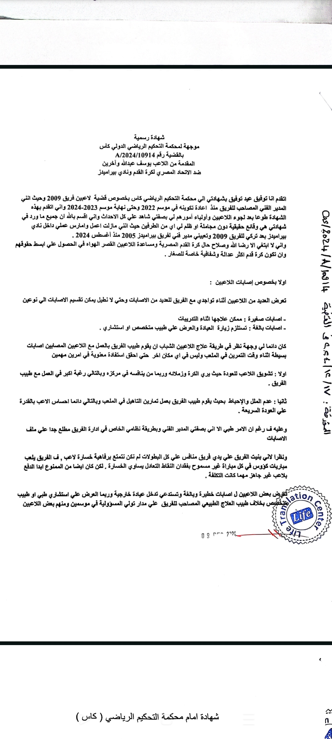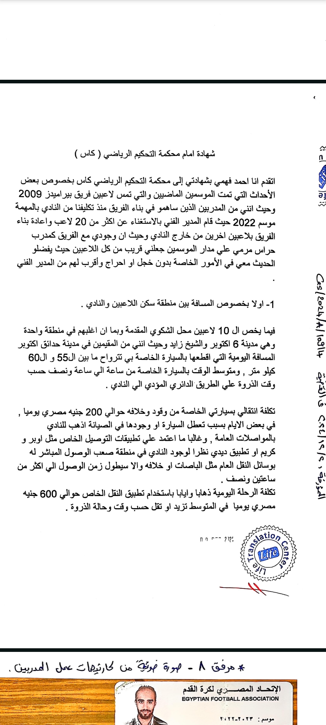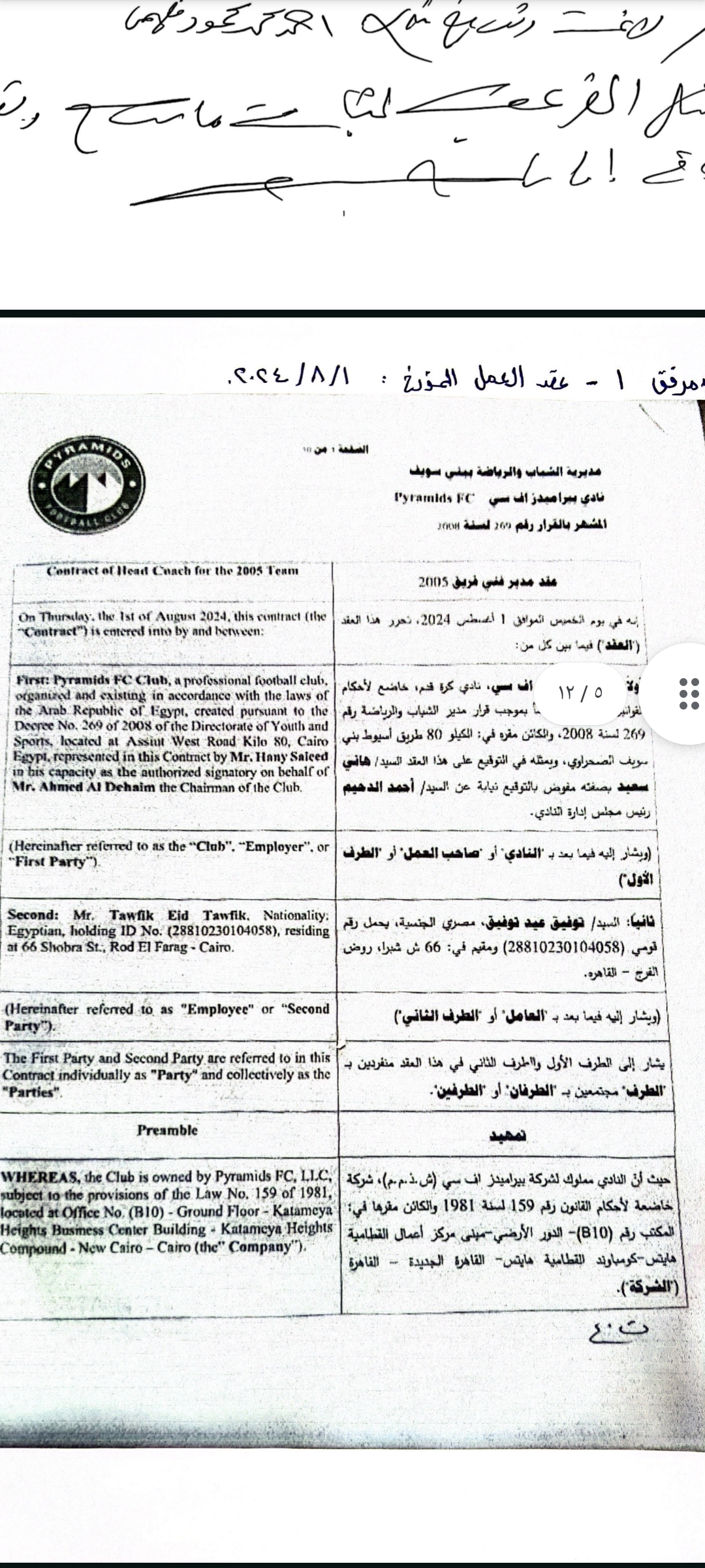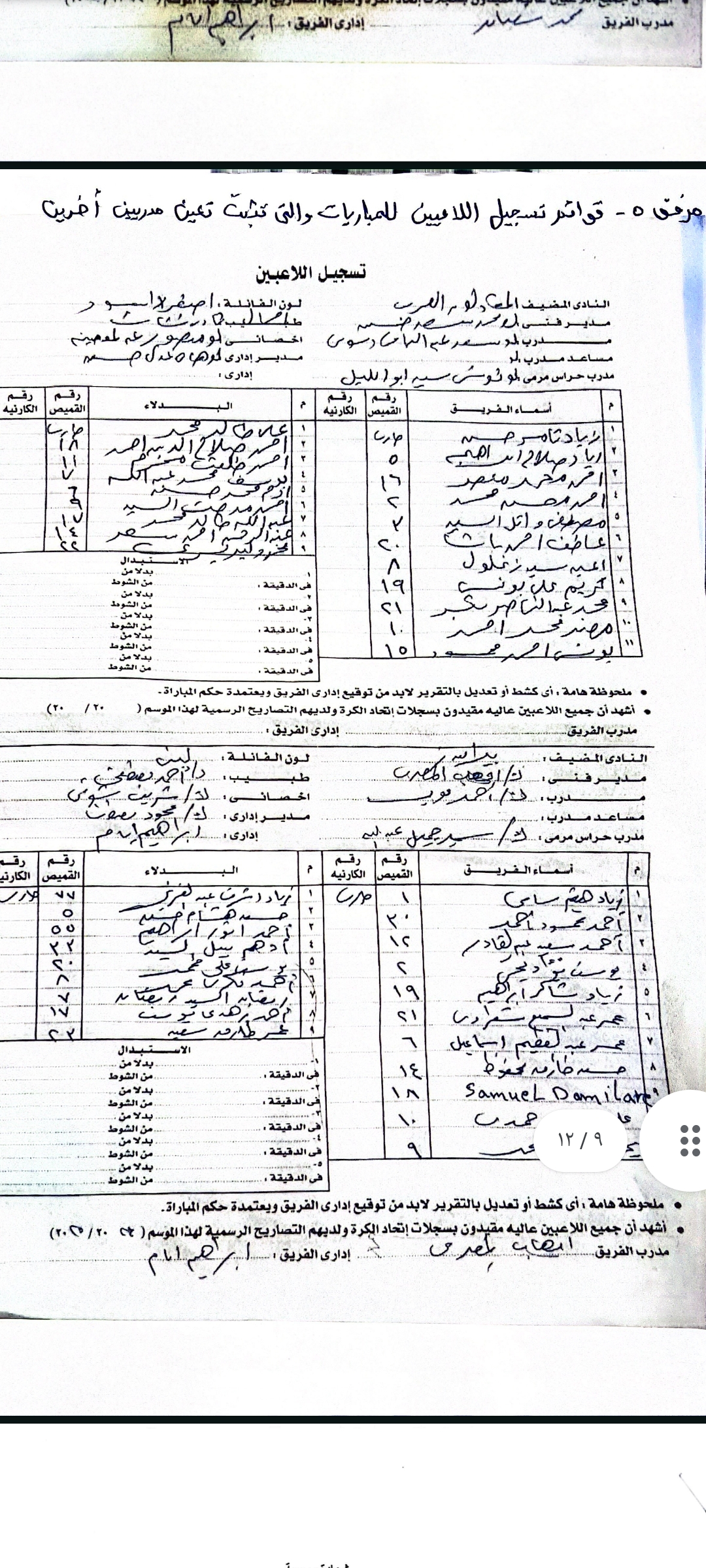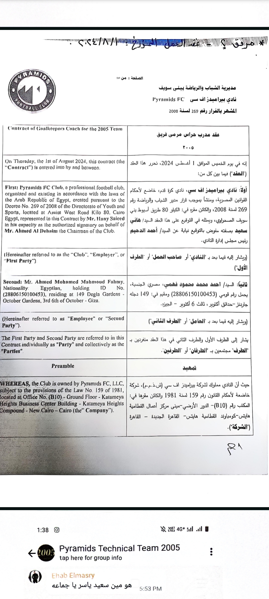 وحصل أبناء المبلغين جميعا على مستند رسمي من الاتحاد المصري لكرة القدم بتاريخ 27 / 8 /2024 يفيد بأنه لاعب حر وغير مقيد على قوائم نادي بيراميدز، ثم فوجئ لاحقا بقيده في سجلات الاتحاد على قوائم النادي ذاتها، وهو ما يعد دليلا دامغًا على وقوع جريمة التزوير والاستعمال من قبل المشكو في حقهم.