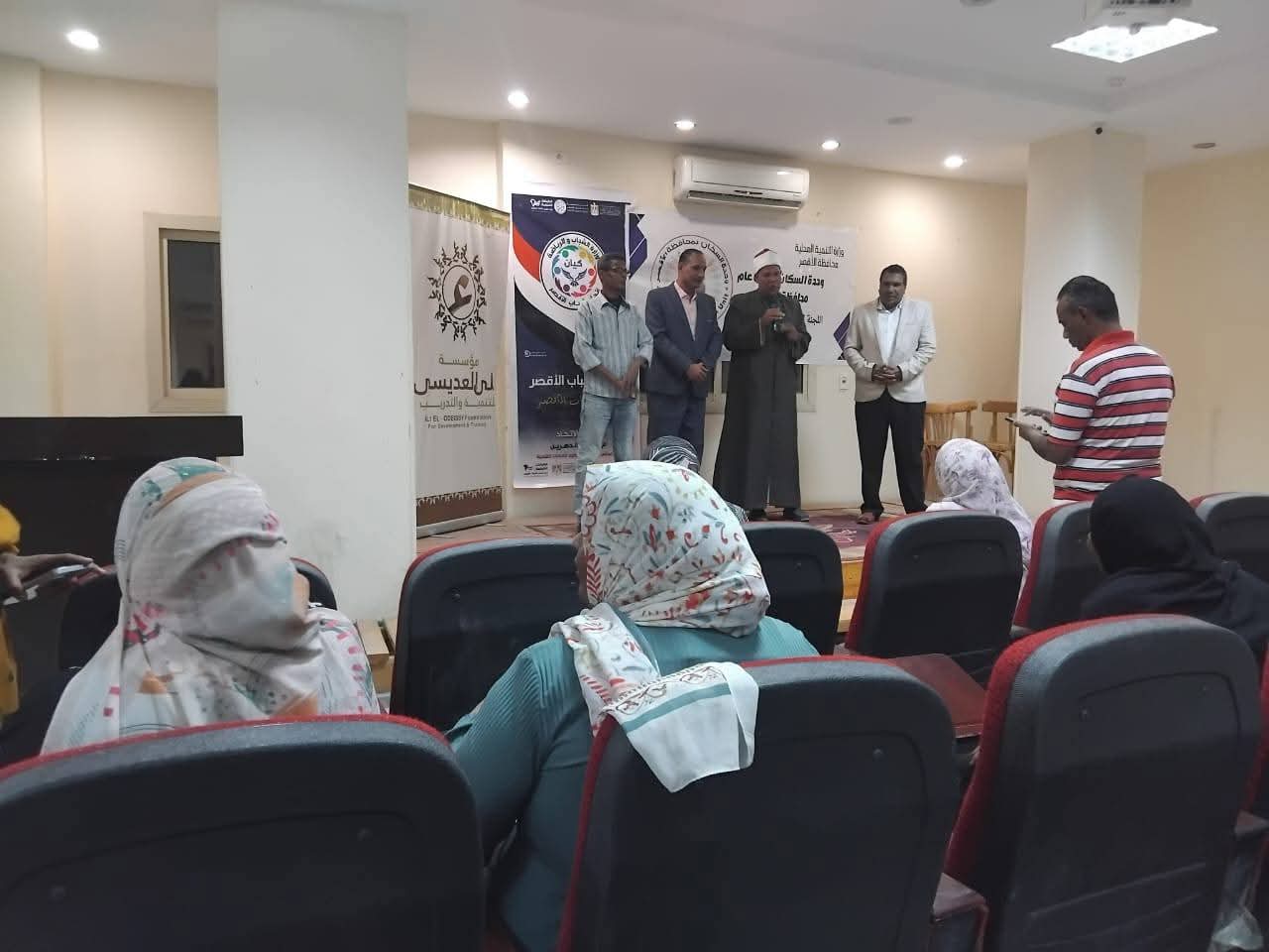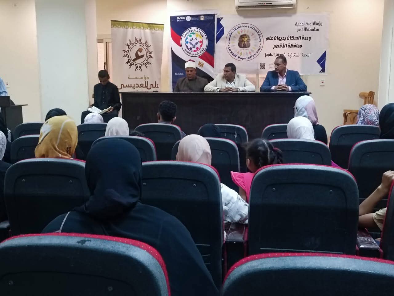 وشهدت الفعالية، التي أقيمت بالتعاون مع مؤسسة علي العديسي ووحدة السكان بديوان عام محافظة الأقصر، حضور عدد من القيادات الأكاديمية والدينية والتنفيذية، منهم الدكتور مصطفى محمود نائب رئيس جامعة الوادي الجديد، والشيخ محمد العراقي من مديرية الأوقاف، والشيخة عطيات الجيلالي من الأزهر الشريف، ومنتصر رزق مدير مؤسسة علي العديسي، وأحمد الشناوي منسق وحدة السكان بالطود، بالإضافة لمنسقي الاتحاد المحلي.