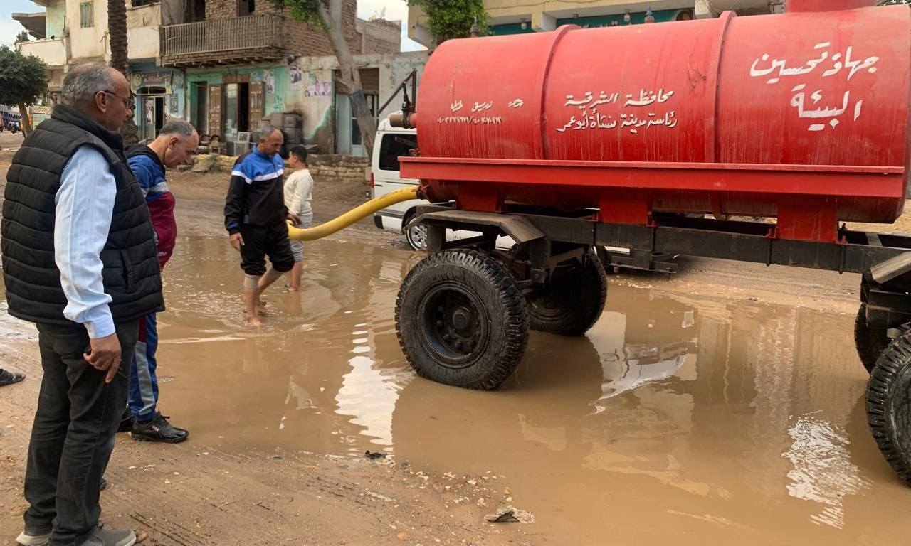 شهدت محافظة الشرقية سقوط أمطار كثيفة؛ في ظل التقلبات الجوية التي تشهدها البلاد والتي تسببت في غرق شوارع بعض القرى، ونجحت محافظة الشرقية في شفط المياه من الشوارع بعد أن تم الدفع بسيارات الكسح في كل أماكن هطول الأمطار وسرعة شفط المياه.