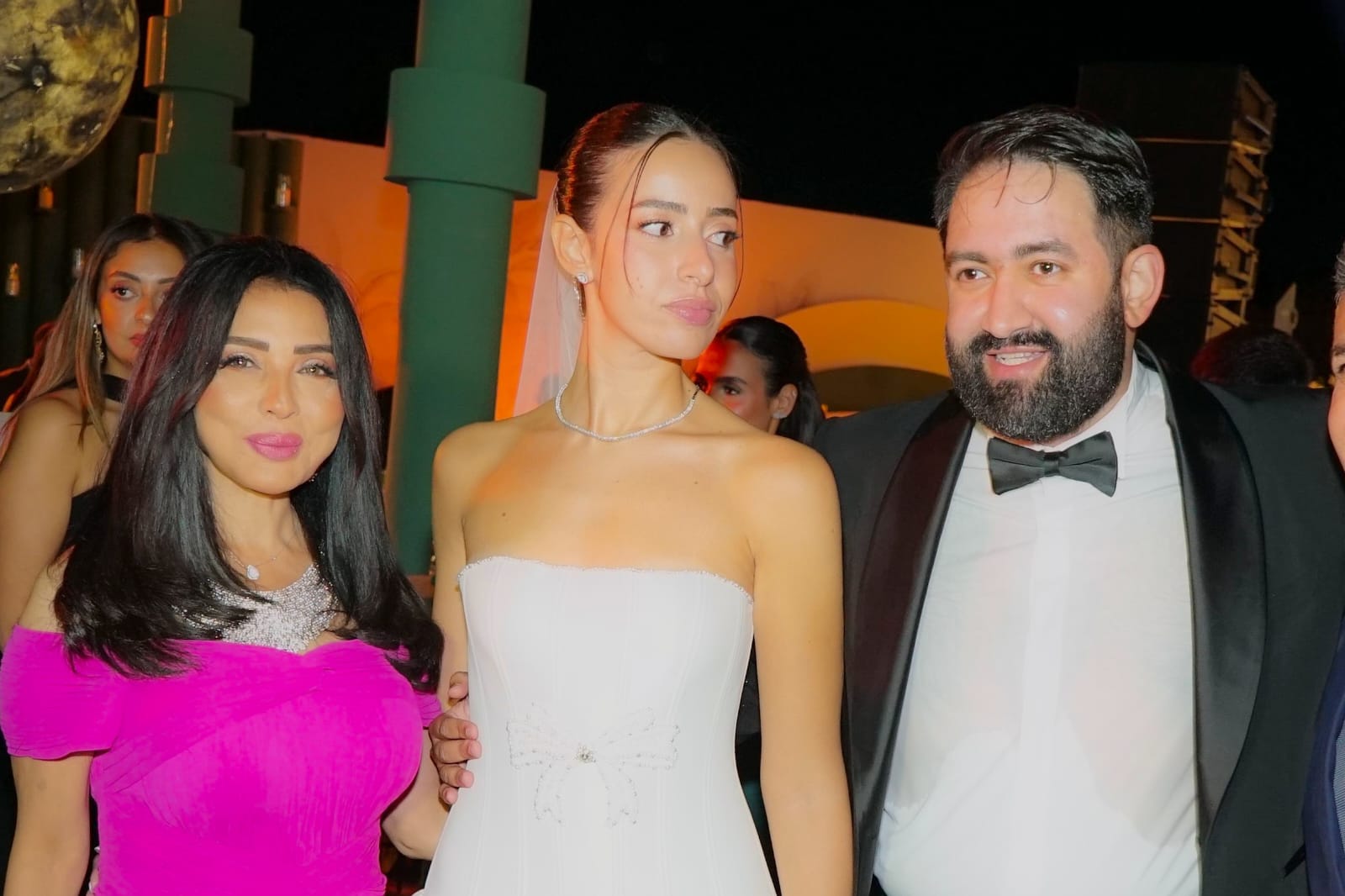 شارك عدد كبير من نجوم الفن وصناع الإعلام في الاحتفال بزفاف "عمر" نجل الإعلامي خيري رمضان والعروس “علياء” وذلك بأحد الفنادق المطلة على الأهرامات .