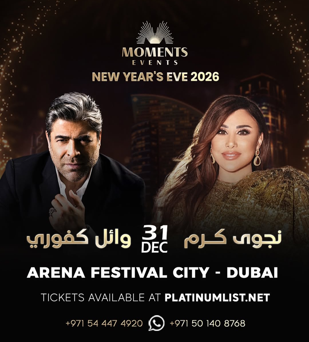 وتُواصل نجوى كرم لقاء الجماهير العربية في جولتها الغنائية، إذ تلتقي جمهورها في دولة قطر مساء 28 نوفمبر 2025 على مسرح المياسة – مركز قطر الوطني للمؤتمرات، قبل أن تختتم عامها بحفلٍ ضخم تستقبل فيه العام الجديد2026 إلى جانب النجم اللبناني وائل كفوري في Arena – Festival City بدبي، في ليلةٍ يُتوقّع أن تجمع محبّي النجمين من مختلف الدول العربية، للاحتفال بقدوم عامٍ جديد على أنغام الفرح والموسيقى.