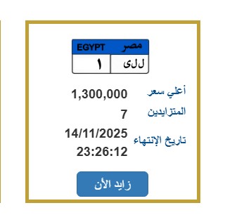 شهدت بوابة مرور مصر الإلكترونية "لوحتك دوت كوم"، تنافس شديد على لوحة معدنية مميزة تحمل رقم "ل ل ي- 1"، والتي وصل عدد المتنافسين عليها الي 7 أشخاص.