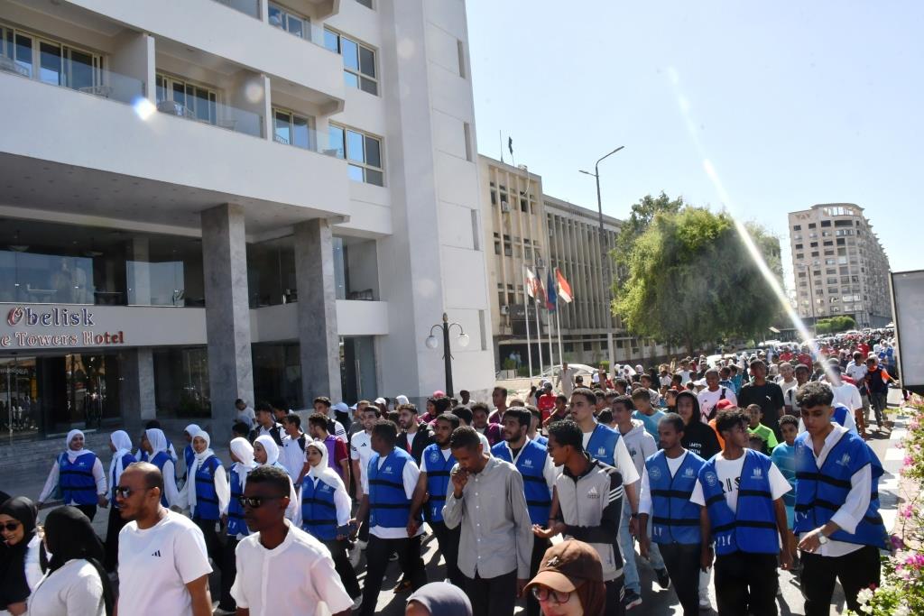 وقد انطلق الماراثون من أمام ديوان عام المحافظة لمسافة 5 كم ، وسط مشاركة من الدكتور لؤى سعد الدين القائم بأعمال رئيس الجامعة ، وزياد يس القائم بأعمال مديرية الشباب والرياضة ، وقيادات المديرية ، فضلاً عن 500 شاب وفتاة من مختلف المراحل العمرية يمثلون مراكز الشباب والأندية الرياضية والجامعة والكيانات الشبابية ومديرية التربية والتعليم .