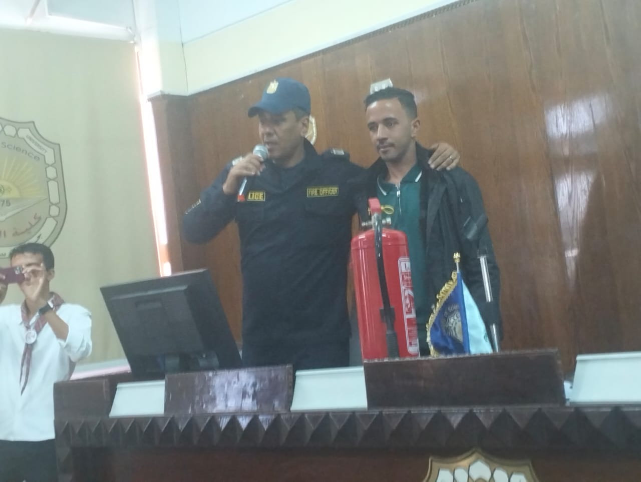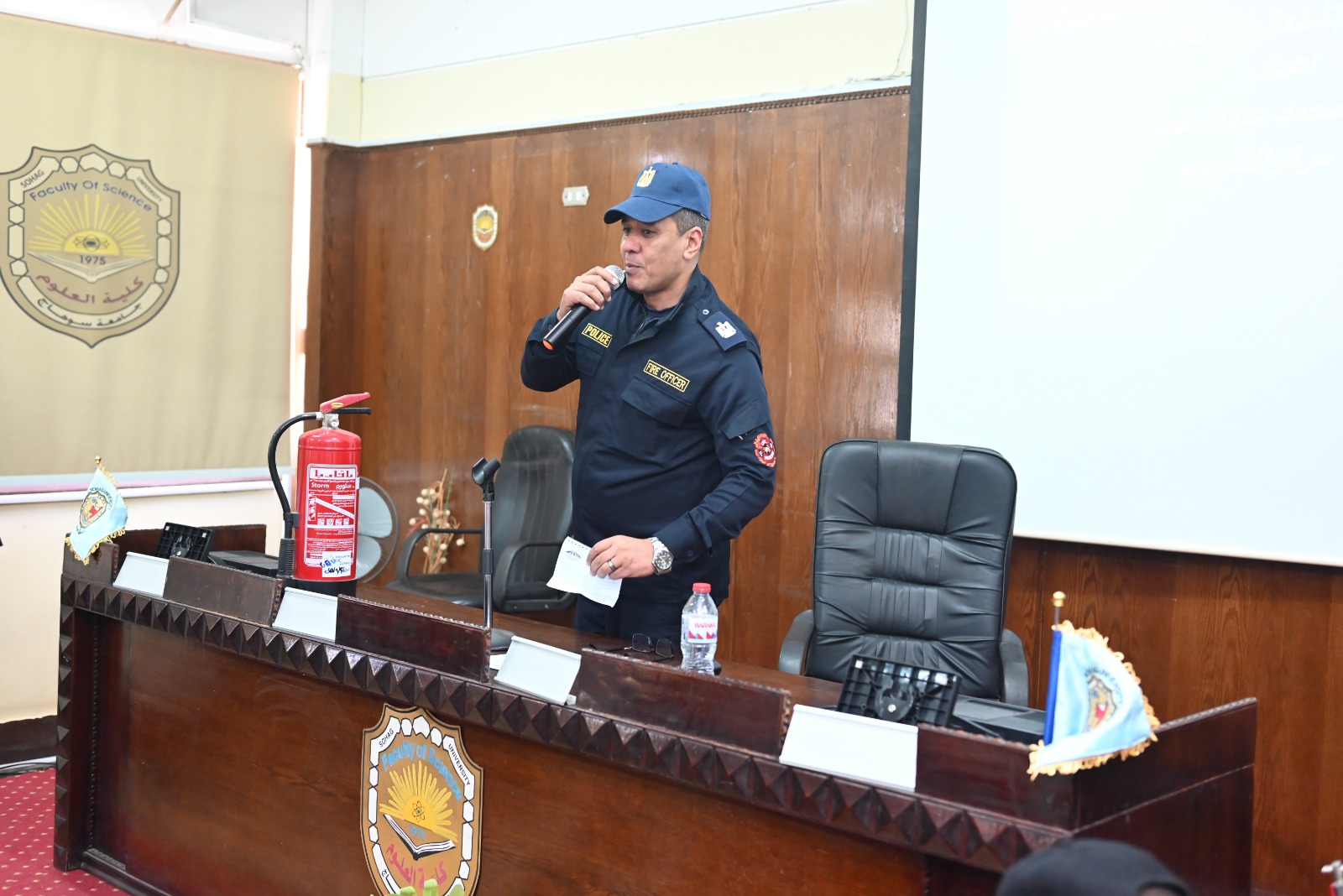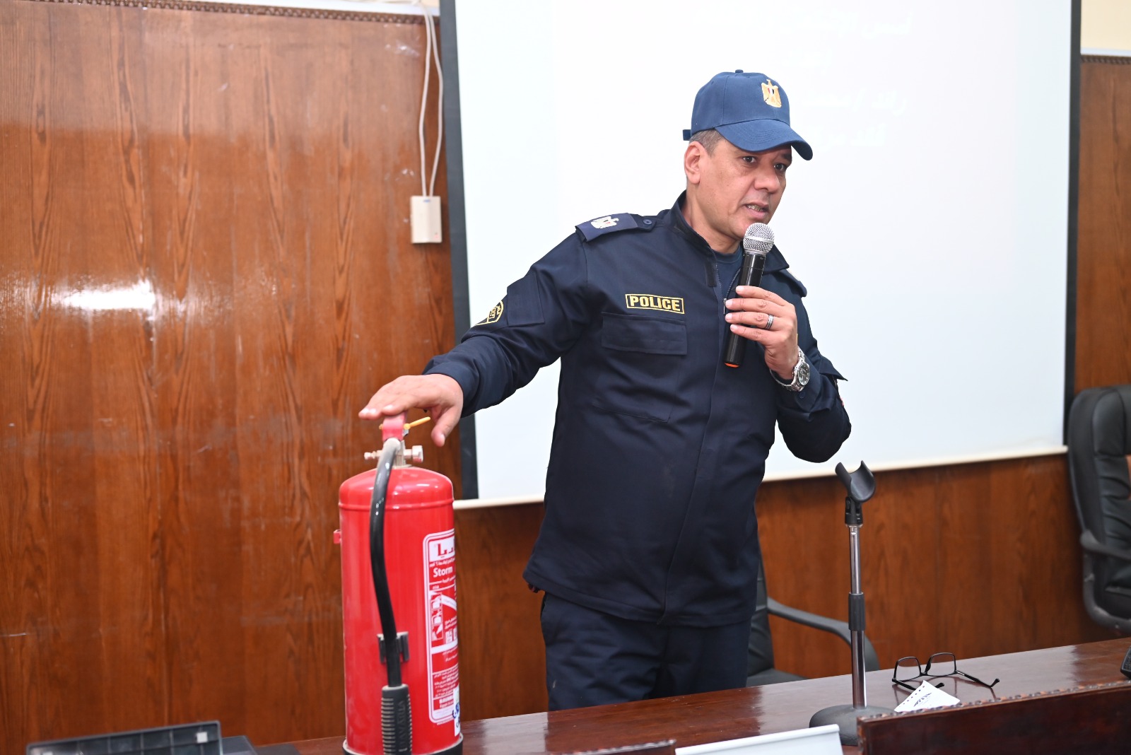 وذلك لرفع الوعي بسرعة التصرف حال وجود مخاطر، وذلك بحضور اللواء طارق حافظ عبدون مديرعام الإدارة العامة للأمن الجامعى،