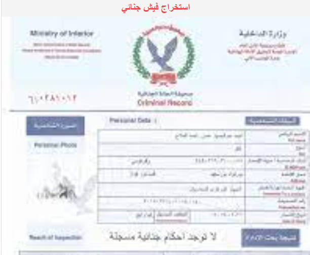 ـ يتقدم المواطن بنفسه ولشخصه لإصدار صحيفة الحالة الجنائية من واقع بيانات بطاقة الرقم القومى.