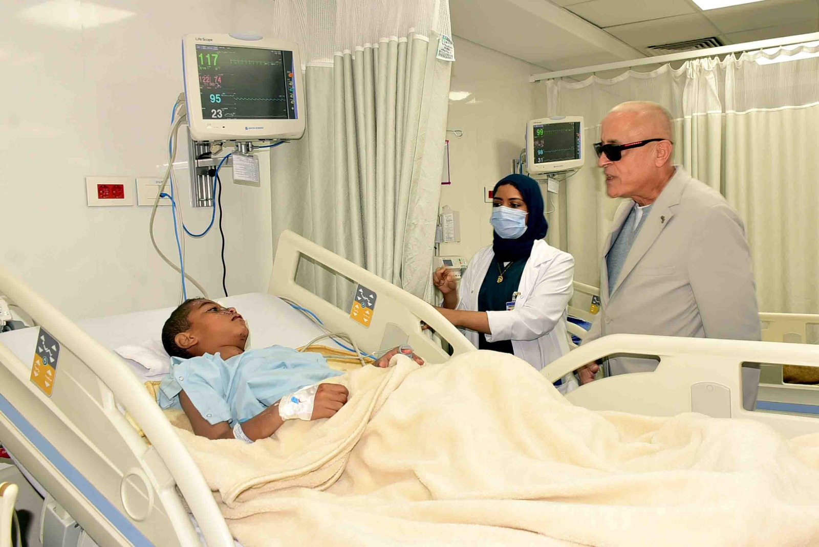 وتفقد محافظ الأقصر الحالة الصحية للأطفال الذين تم تحويلهم من مستشفى طيبة التخصصي بإسنا إلى مجمع الأقصر الطبي، حيث يتواجد 3 أطفال داخل قسم العناية المركزة للأطفال، بينما يرقد طفل آخر بالقسم الداخلي.