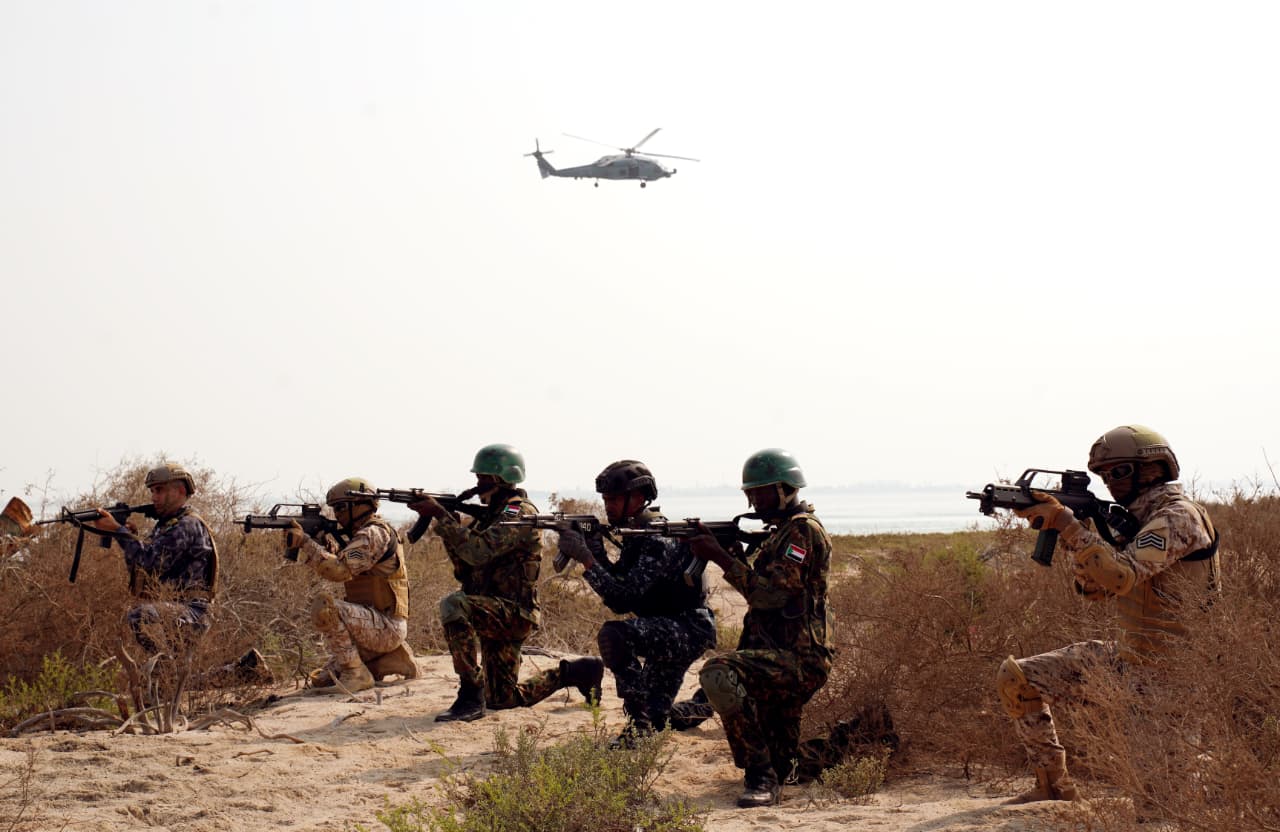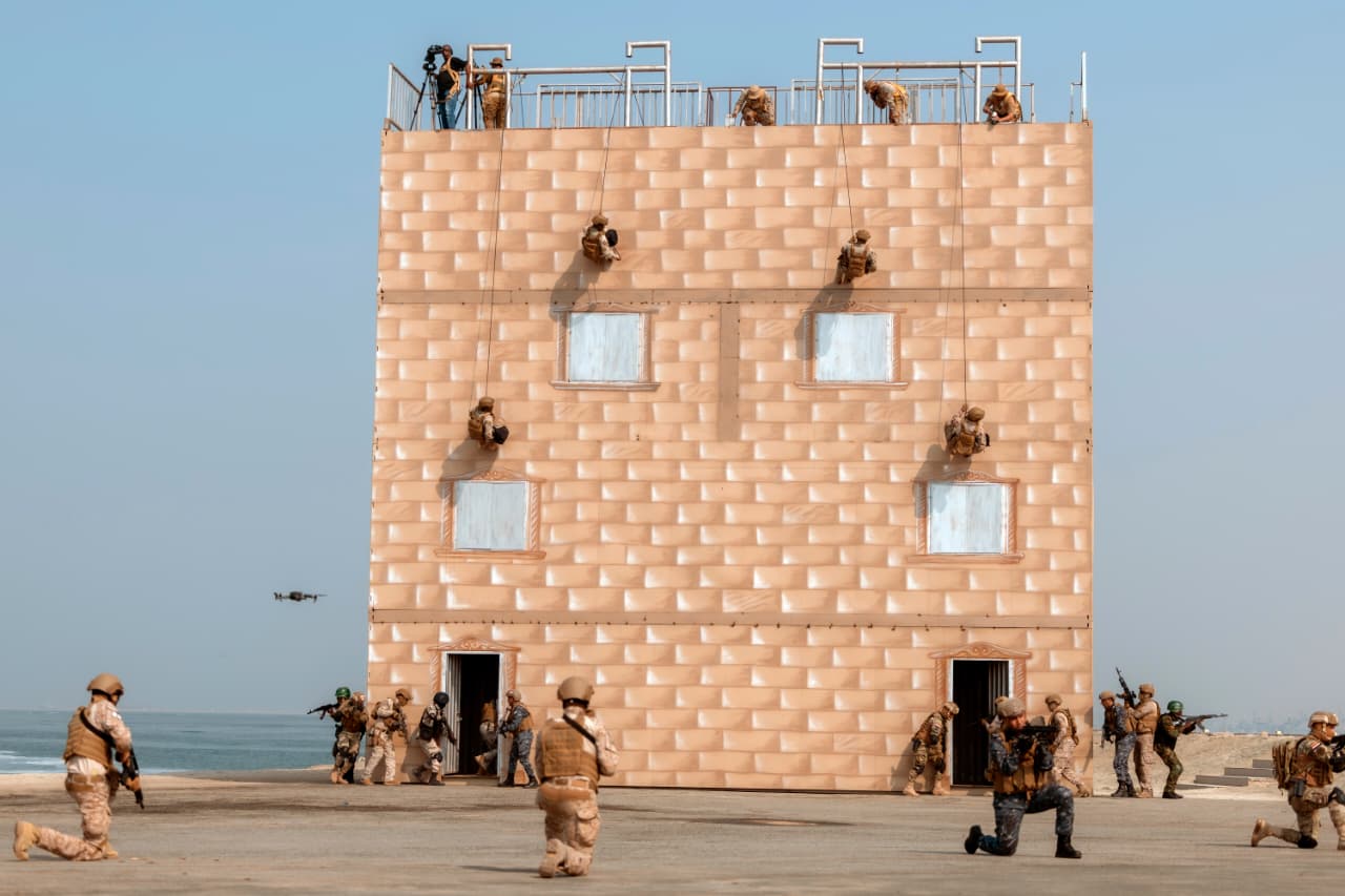 وتضمنت المرحلة الختامية للتدريب تنفيذ بيان عملى على اقتحام إحدى الجزر الساحلية تحت ستر التمهيد النيرانى لعناصر القوات الجوية ، فضلاً عن تقديم المعاونة الجوية للقوات واستطلاع ساحل الجزيرة وتأمينه تمهيداً لتقدم القوات وتنفيذ الإقتحام بنجاح.