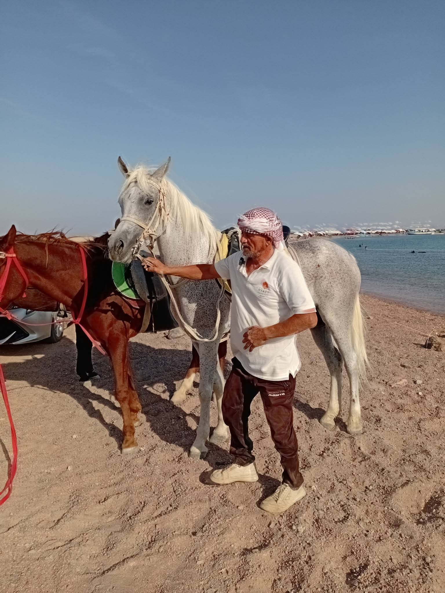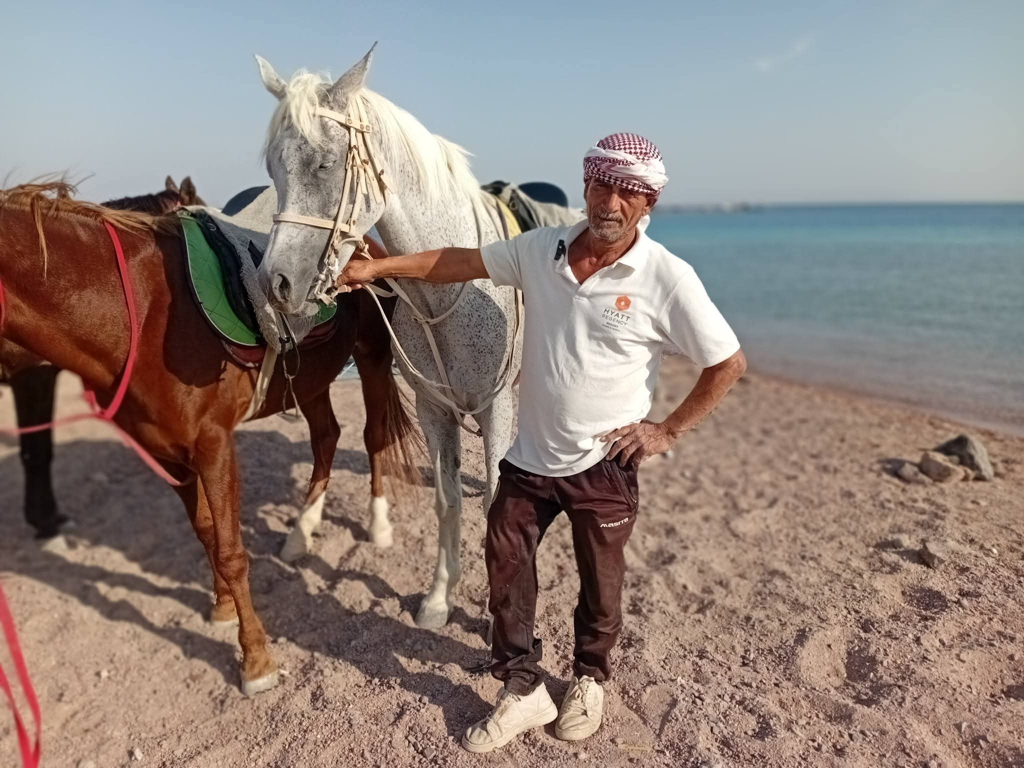 وتضيف: "ساعدني أبو موسى في التعامل مع الخيل؛ حيث جعلنا نداعبه ونطعمه قطعة سكر في بادئ الأمر. كنت سعيدة، وأول شيء قمت به بعدما وصلت مدينة دهب هو البحث عن أبو موسى على الشاطئ لتكرار تلك التجربة الممتعة مرة أخرى".