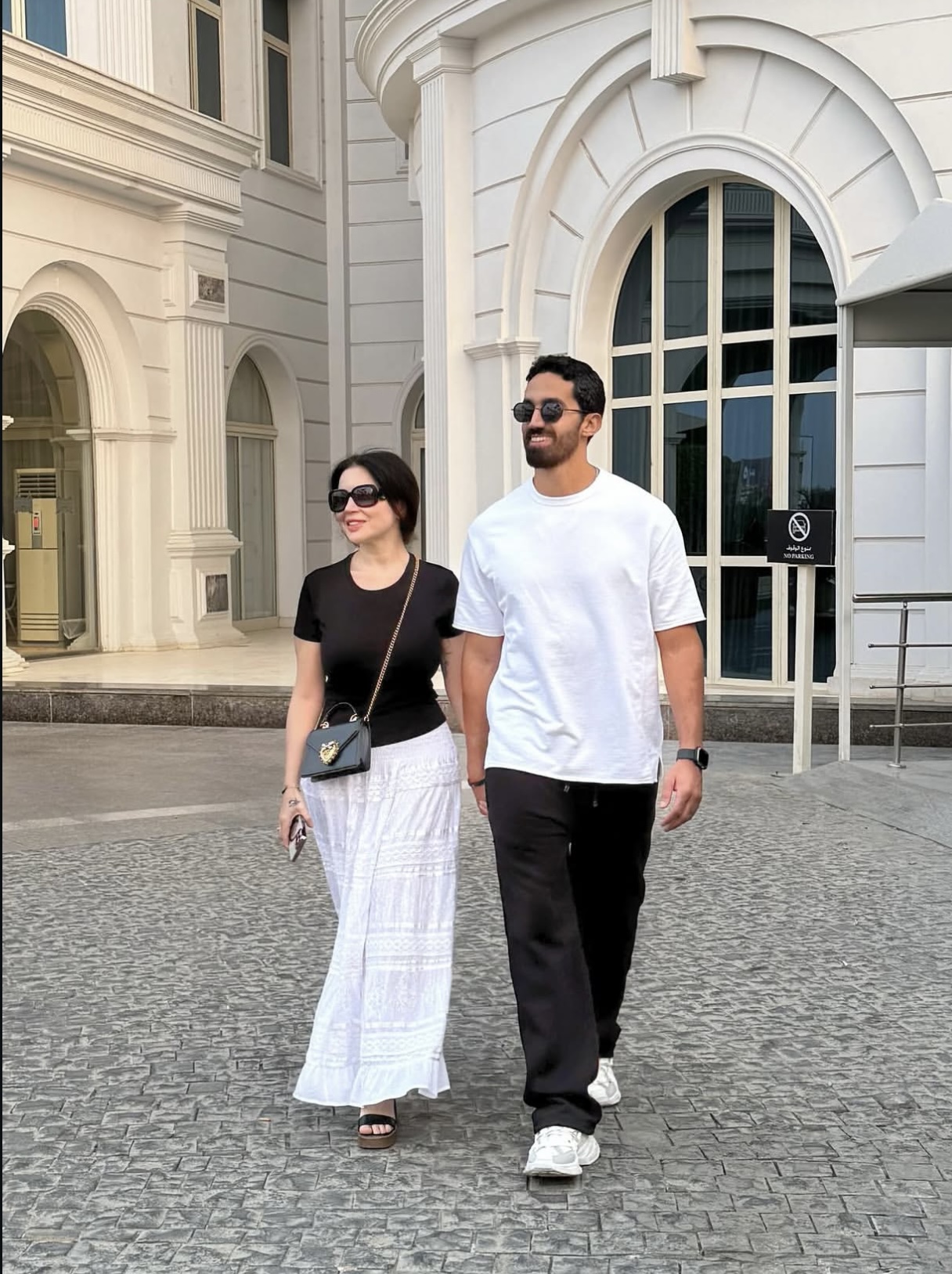 وتفاعل الجمهور أيضا مع صور شهر العسل التي نشرتها مي عز الدين مؤخرا حيث ظهرت برفقة زوجها وهما يرتديان ألوانا متناسقة ويستمتعان بالأجواء الهادئة فيما علقت إحدى المتابعات مخاطبة تيمور إياك تزعلها ليرد عليها قائلا في عينيا وفوق راسي والله.