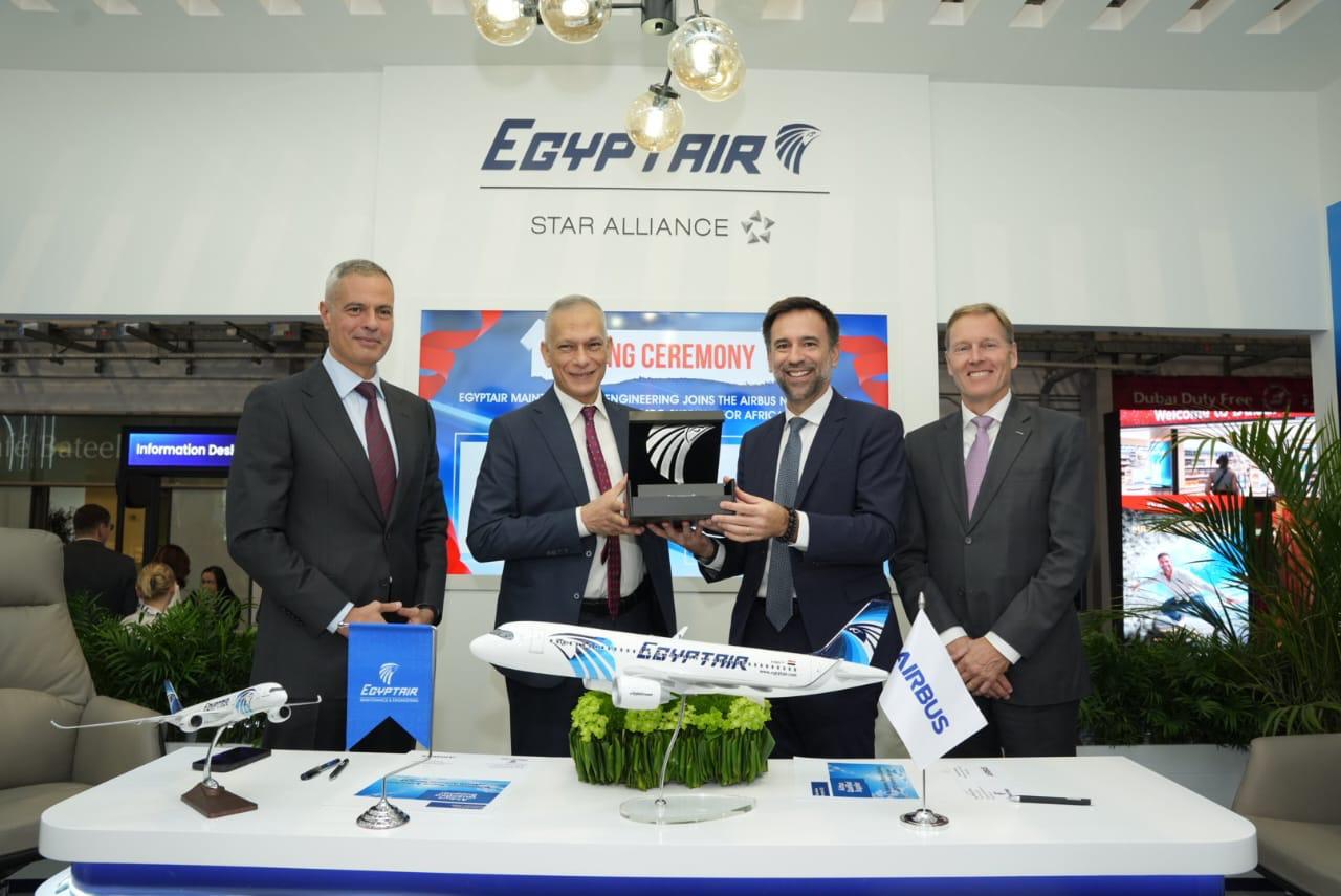 وقع الاتفاقية المهندس إبراهيم فتحي رئيس مجلس الإدارة والعضو المنتدب التتفيذي لشركة مصر للطيران للصيانة والأعمال الفنية، وعن شركة أيرباص جابريل سيميلاس رئيس أيرباص لمنطقة أفريقيا والشرق الأوسط.