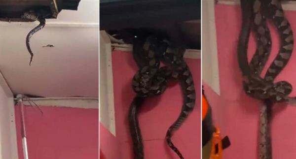 ثعبان ضخم يزن 55 كيلو يقتحم سقف منزل في ماليزيا