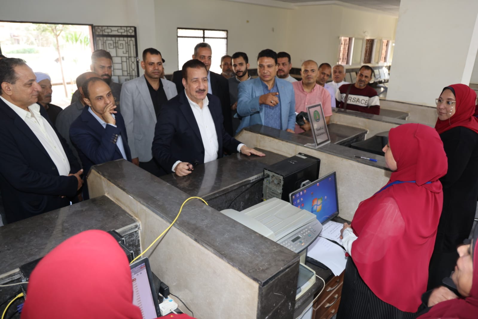كما تضمنت الجولة تفقد المحافظ انتظام سير العمل بمجمع خدمات المواطنين والذى يضم وحدات خدمية متعددة تشمل (التموين ، الشئون الاجتماعية ، السجل مدني، البريد، وحدة محلية ، الشهر العقاري، مركز تكنولوجي ) فضلاً عن صالة انتظار خاصة بالمواطنين ، فيما تفقد المحافظ منظومة العمل بالمركز التكنولوجي والخدمات المقدمة بمختلف القطاعات لضمان تأدية الخدمات للمواطنين بشكل أفضل وعلى أكمل وجه ، ووجه بتسريع وتيرة الأعمال للإنتهاء من الملفات المتبقية وتذليل العقبات وتقديم سبل الدعم أمام المواطنين لتقنين أوضاعهم والاستفادة من المزايا التي قدمتها الدولة مما يحقق الصالح العام للدولة والمواطن .