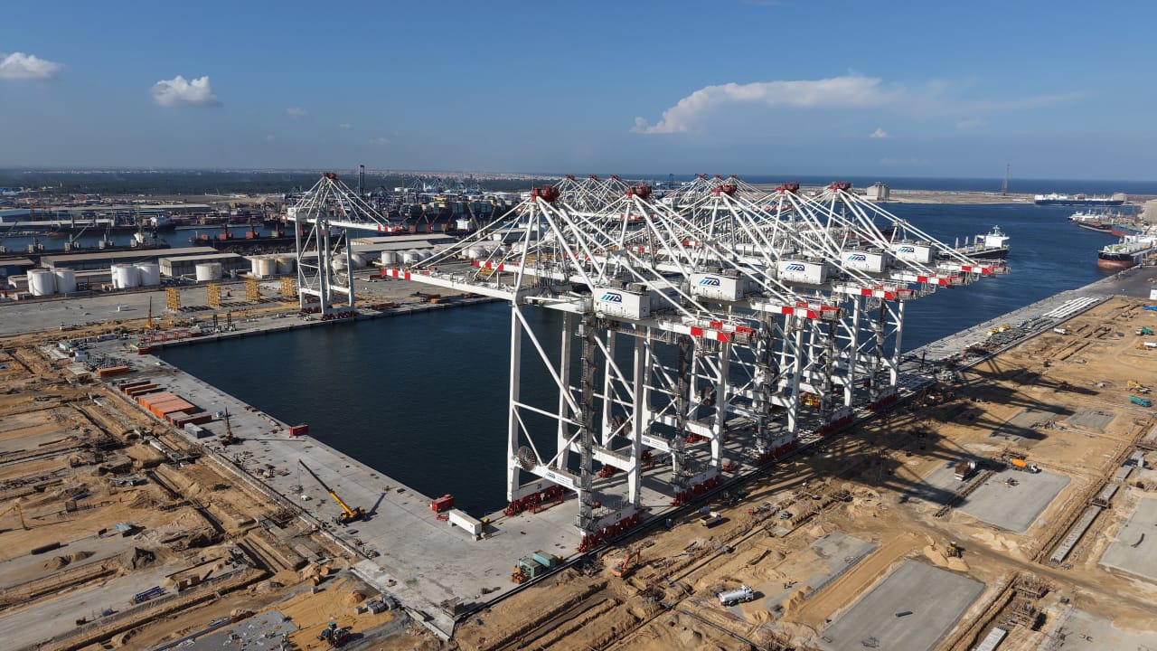 واستقبلت المحطة 12 ونش رصيف عملاق مخصص لتداول الحاويات، تُعد من أحدث الأوناش على مستوى العالم من إنتاج شركة HHMC الصينية، بقدرات رفع تصل إلى 75 طن وارتفاع تشغيل يصل إلى 57.5 متر وطول ذراع خارجي 72 متر، بما يمكّن المحطة من التعامل مع السفن العملاقة حتى عرض 11 حاوية.