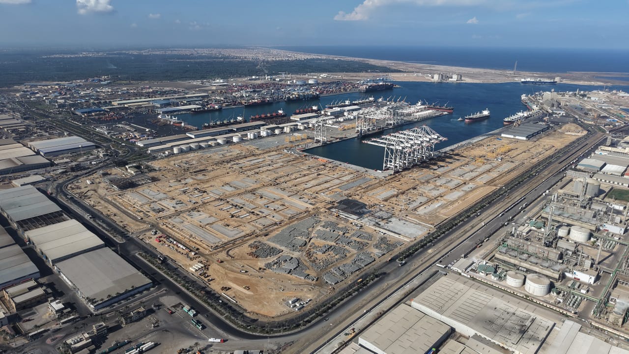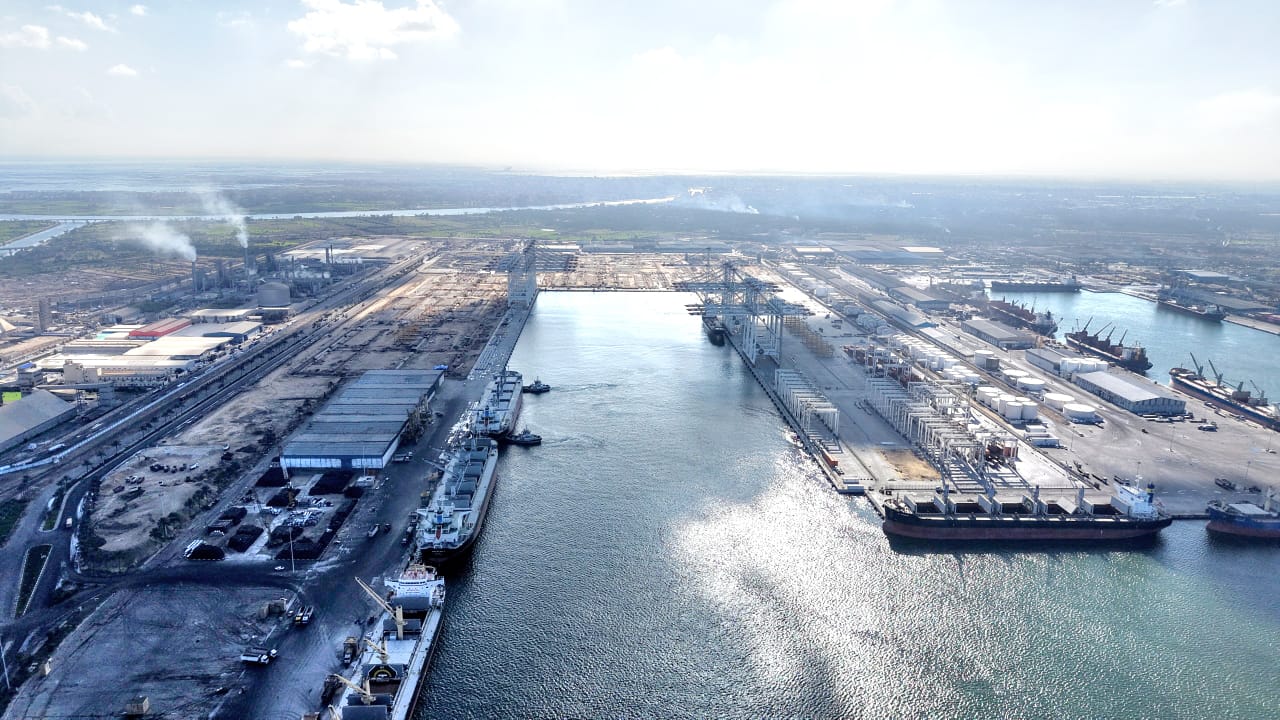 نشرت وزارة النقل أحدث تصوير جوي لمحطة حاويات "تحيا مصر 1" بميناء دمياط.