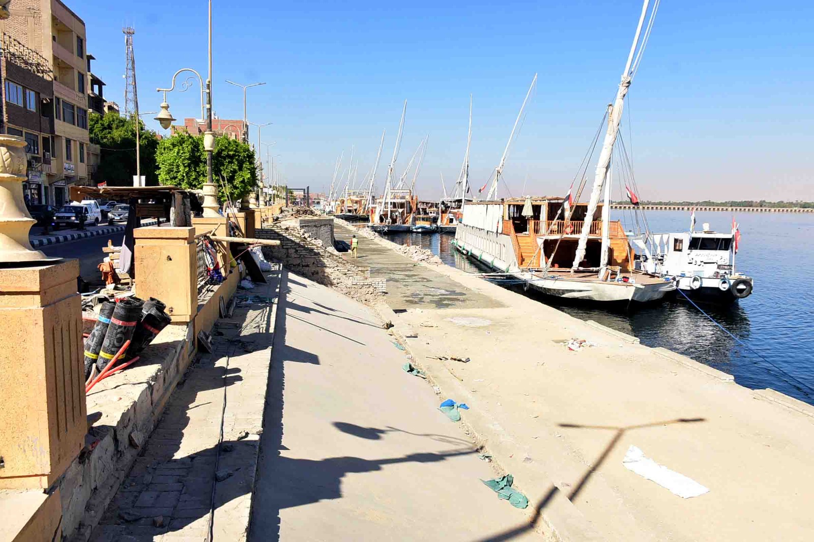 تفقد المهندس عبد المطلب عمارة محافظ الأقصر، اليوم، أعمال التطوير الجارية بكورنيش مدينة إسنا جنوب المحافظة، وذلك للوقوف على نسب التنفيذ وجودة الأعمال. وشملت جولة محافظ الأقصر متابعة أعمال تركيب بلاط الإنترلوك التي تم تنفيذها بشارع السويقة وتفرعاته بواسطة الشركة الوطنية للمقاولات العامة والتوريدات، ضمن خطة المحافظة لتطوير الشوارع الداخلية ورفع كفاءة البنية التحتية بمدينة إسنا، بما يسهم في تحسين مستوى الخدمات واستقبال الزيادة المستهدفة من إعداد السائحين.
