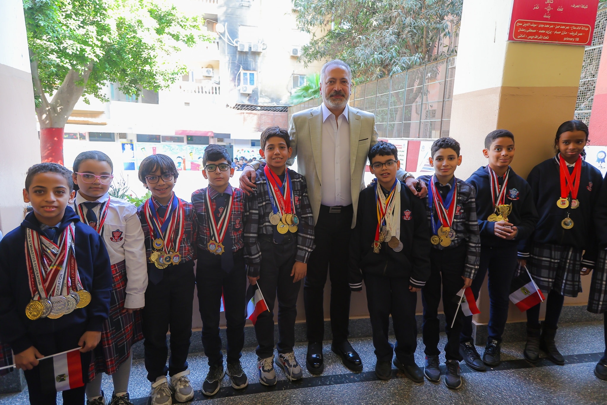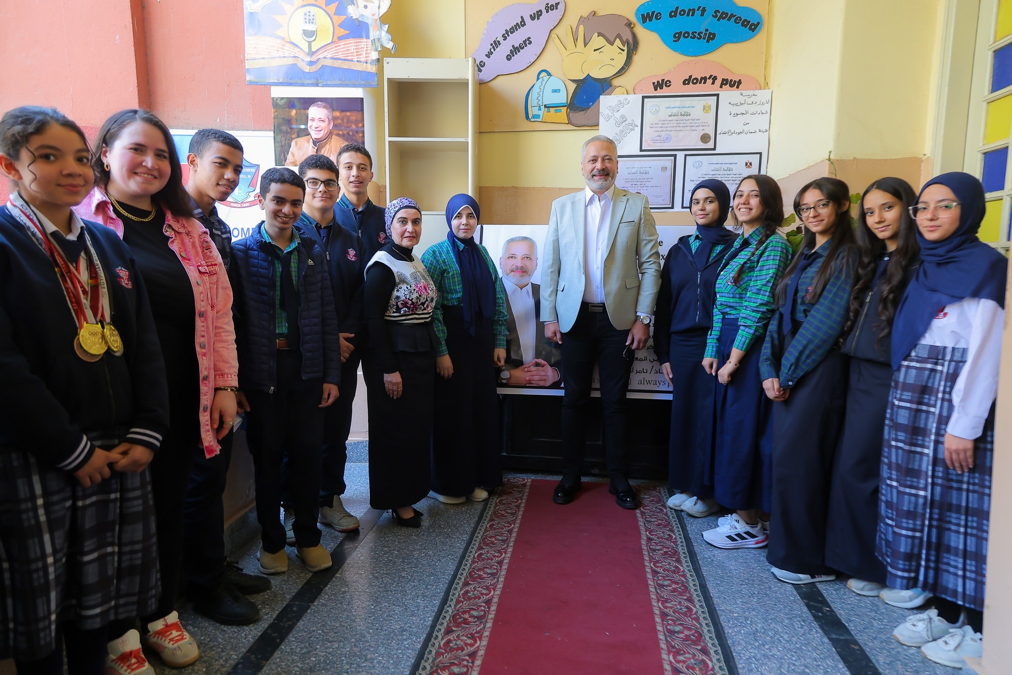 وقد حرصت إدارة المدرسة على تكريم الاعلامي تامر أمين ، كما حرص الاعلامي خلال زيارته على لقاء طلاب المدرسة والتحاور معهم عن ذكرياته وإلتقات الصور التذكارية معهم