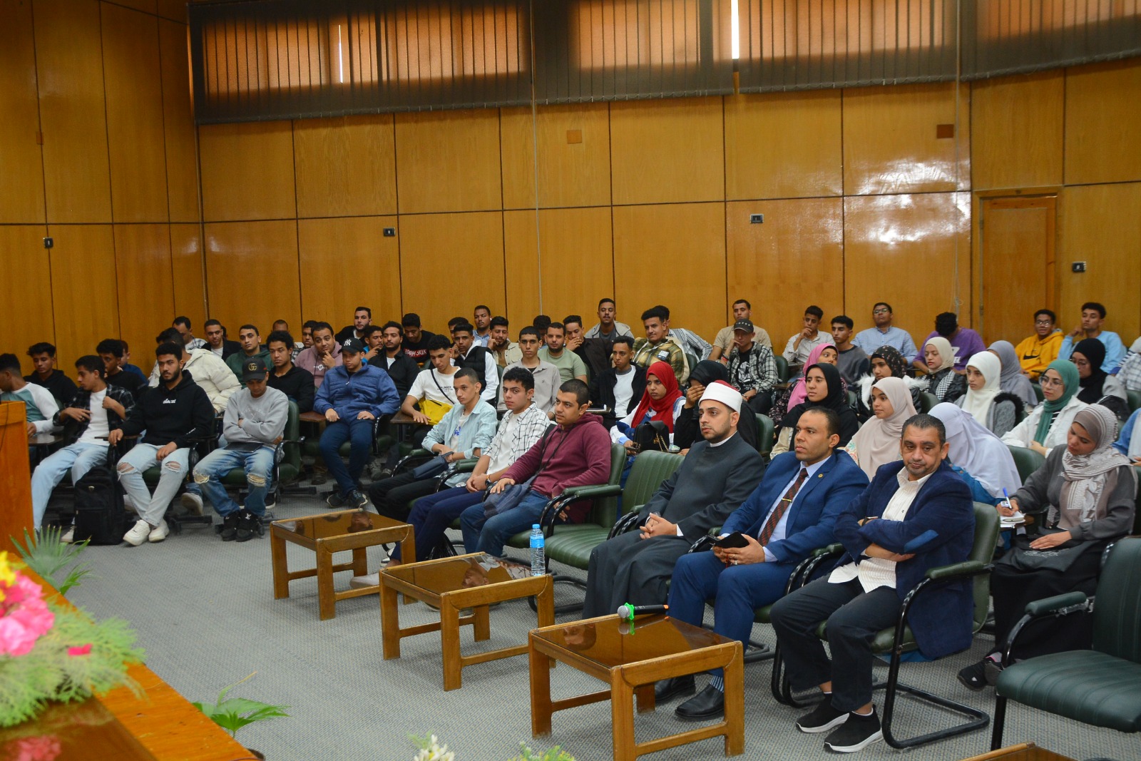 وشهدت الندوة حضور الدكتور محمد عدوي نائب رئيس الجامعة لشئون خدمة المجتمع وتنمية البيئة، وتحت إشراف الدكتور مجدي علوان عميد الكلية، والدكتور حامد مشهور وكيل الكلية لشئون خدمة المجتمع وتنمية البيئة، وحضور الدكتور محمد أبورحاب وكيل الكلية لشئون التعليم والطلاب، والدكتور سامح البنا وكيل الكلية لشئون الدراسات العليا والبحوث، إلى جانب حضور واسع من الطلاب وأعضاء هيئة التدريس.