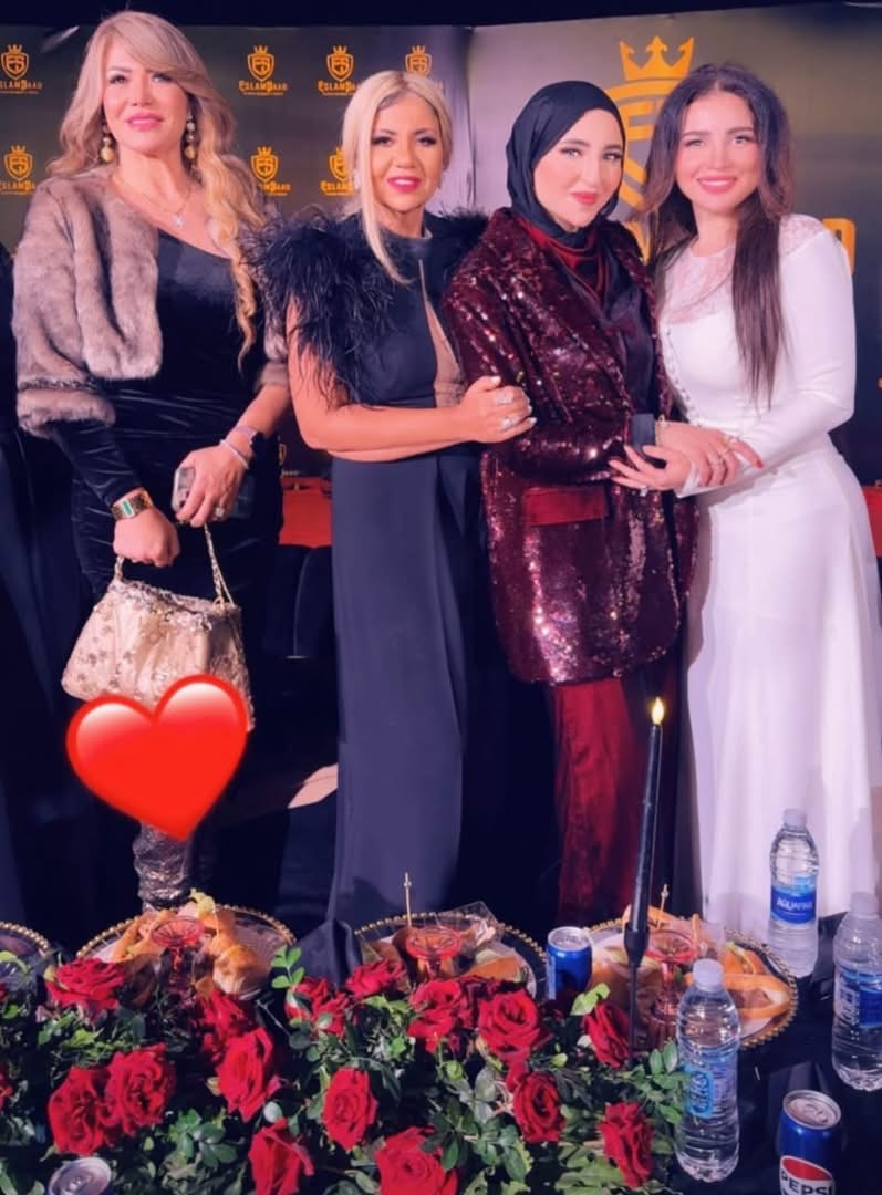 اختارت مي فستانًا أبيض رقيقًا منحها إطلالة أقرب إلى طلة العرائس، وسط أجواء مفعمة بالترحيب والتهاني والزغاريد من الفنانين المتواجدين ومن بينهم هالة صدقي وحمادة هلال، اللذان قدّما التهنئة للعروسين وسط حالة من البهجة.