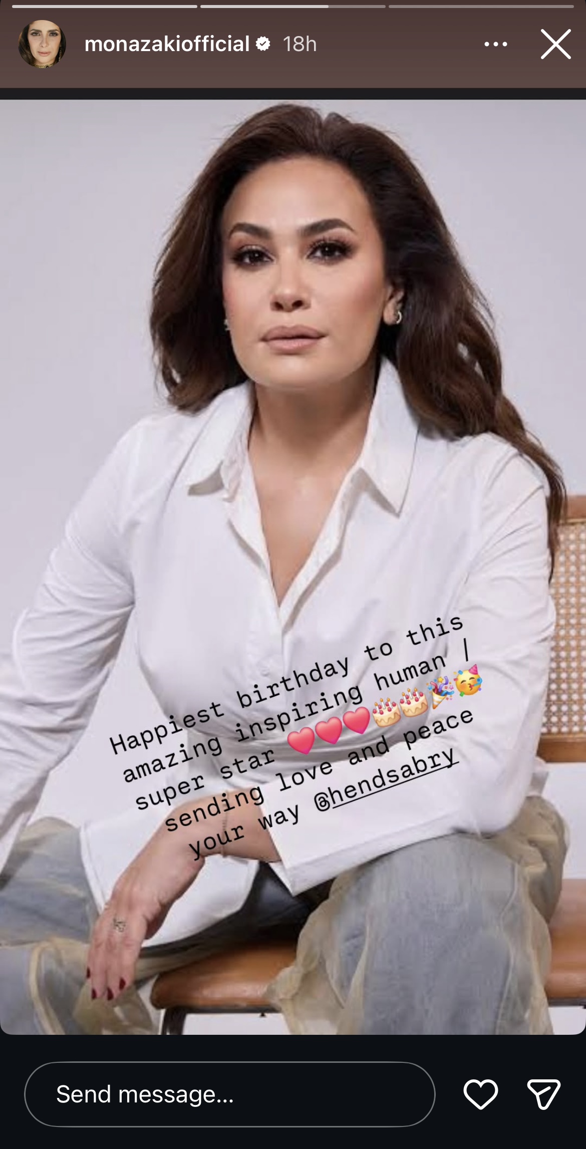 هنأت الفنانة منى زكي، هند صبري بمناسبة عيد ميلادها، في أحدث ظهور عبر حسابها على انستجرام.