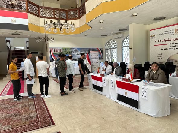 كما توافد المصريون في عُمان على مقر السفارة منذ الصباح للمشاركة في التصويت، وسط تنظيم واضح وسلاسة في الإجراءات.