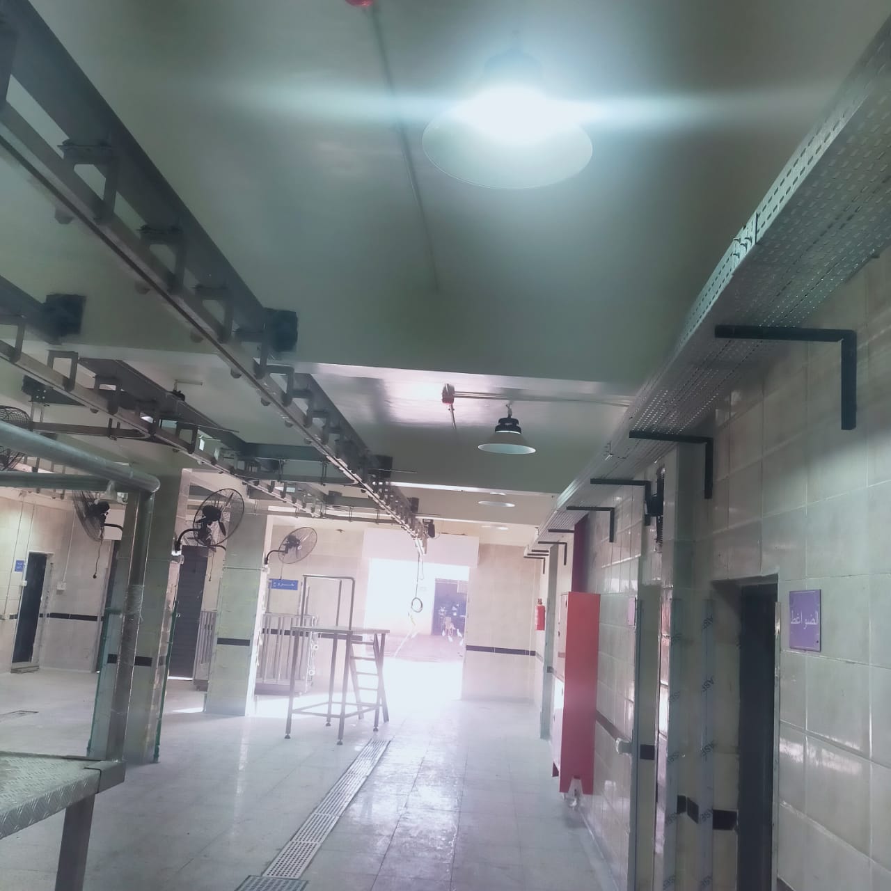 2100 م٢ والتكلفة الإجمالية حوالي 22 مليون جنيه وبطاقة ذبيح 80 رأس / في الوردية.