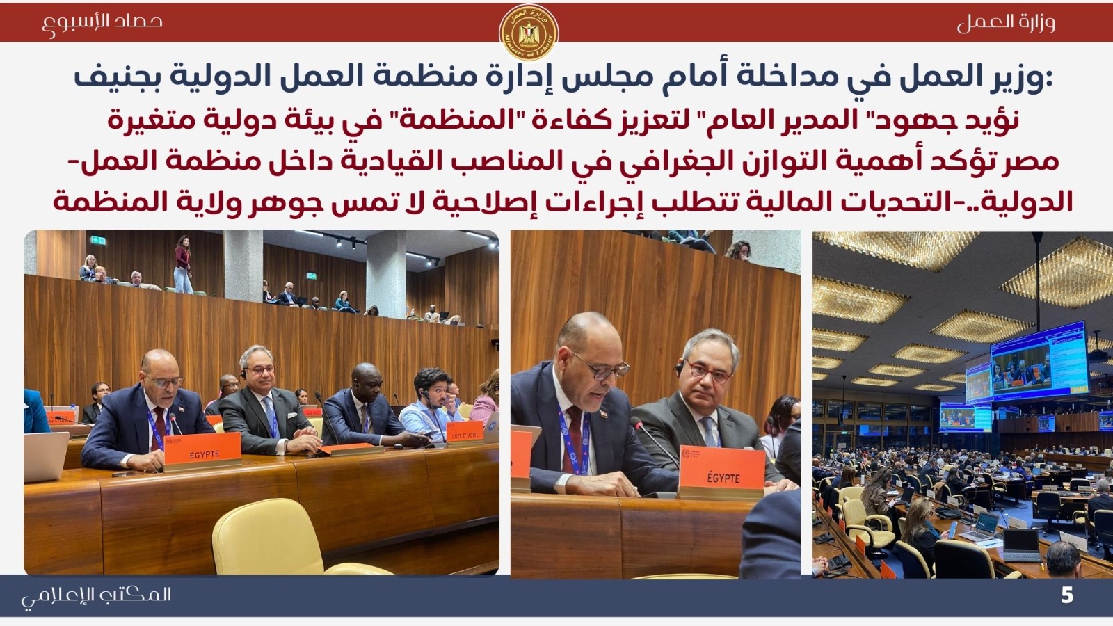 مداخلة مصر حول إصلاح منظمة العمل الدولية