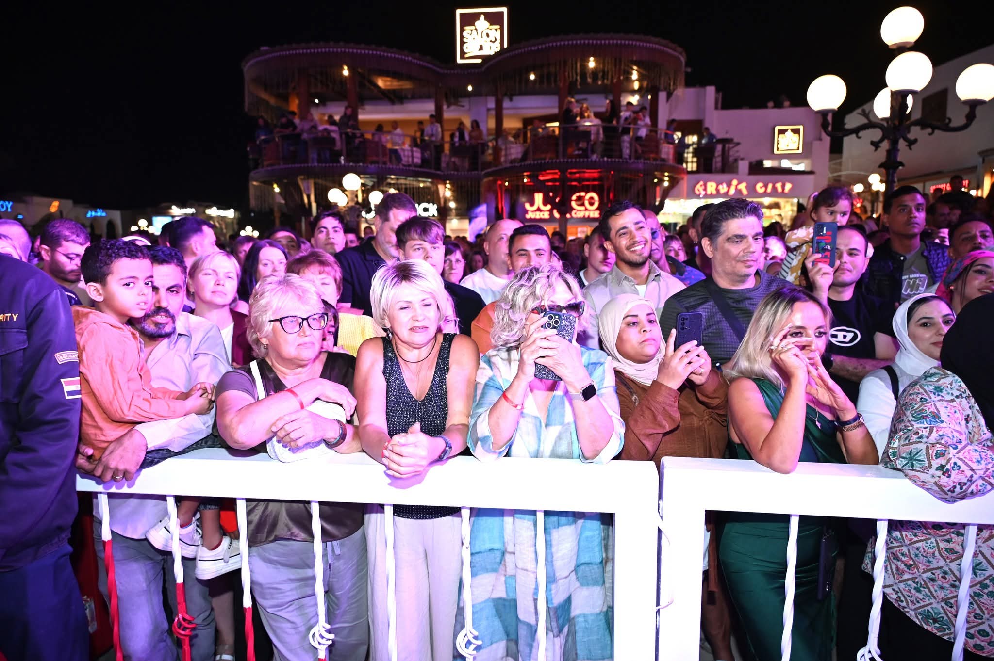تدفقت آلاف العائلات والسياح من مختلف الجنسيات إلى ميدان سوهو سكوير بمدينة شرم الشيخ للمشاركة في مهرجان الإضاءة السنوي، الذي أطلق إيذاناً ببدء احتفالات الموسم الشتوي والعام الجديد. ويأتي هذا الحدث وسط ارتفاع غير مسبوق في حركة السياحة، حيث تجاوزت نسبة الإشغال السياحي بالفنادق والمنتجعات 90%.