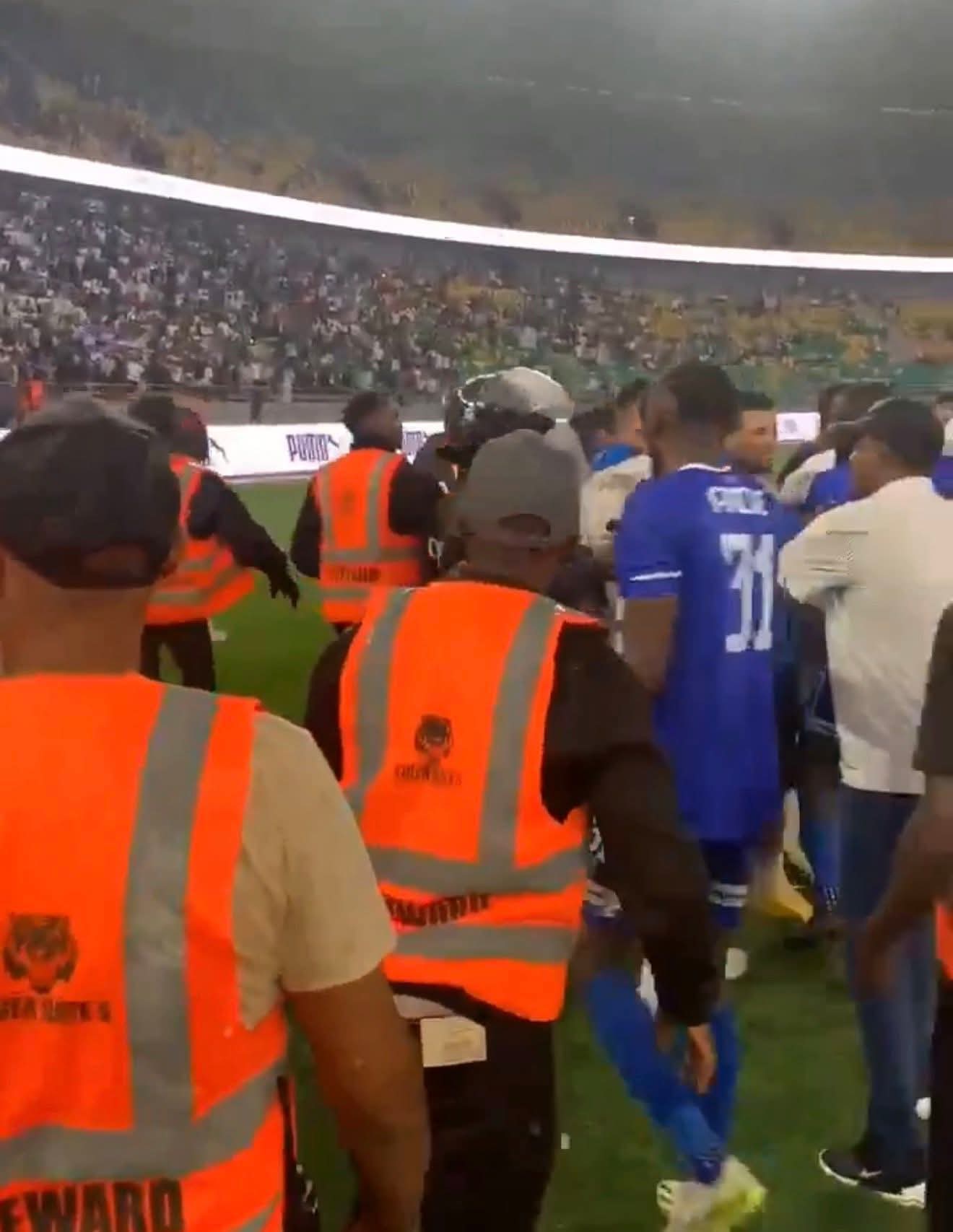اندلعت اشتباكات بين لاعبي مولودية الجزائر والهلال السوداني مباشرة بعد صافرة النهاية، ما استدعى تدخل عناصر الأمن سريعًا لفضّ التوتر والسيطرة على الموقف.