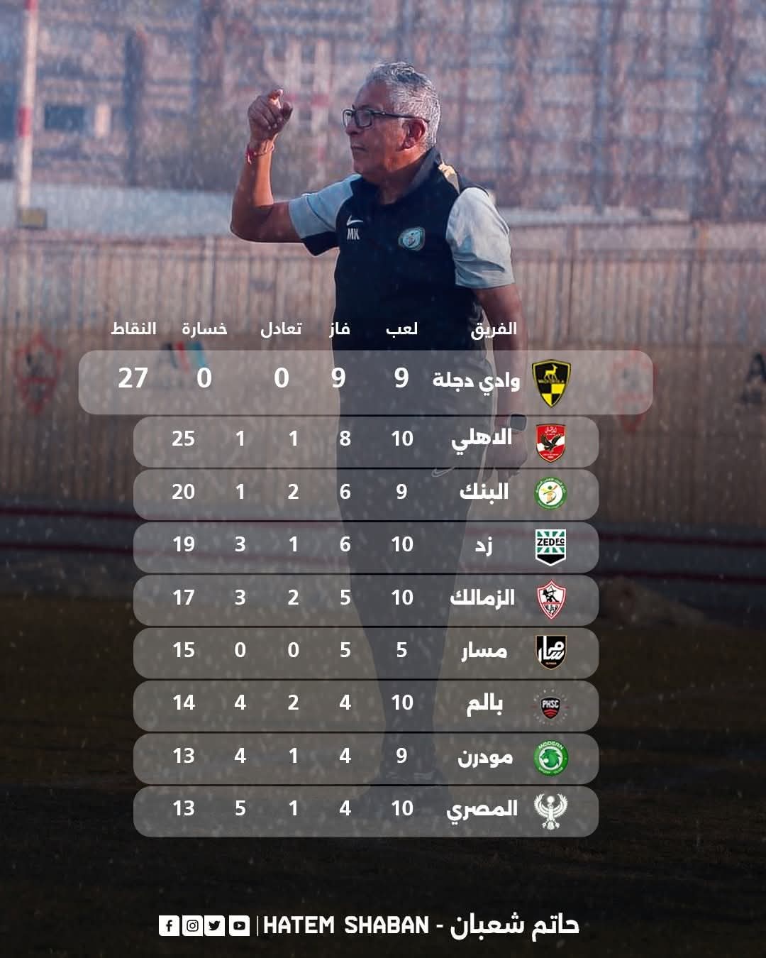 وكتب خالد طلعت عبر صفحته على موقع التواصل الاجتماعي فيسبوك:"الزمالك يتراجع الى المركز الخامس في دوري كرة القدم للسيدات".