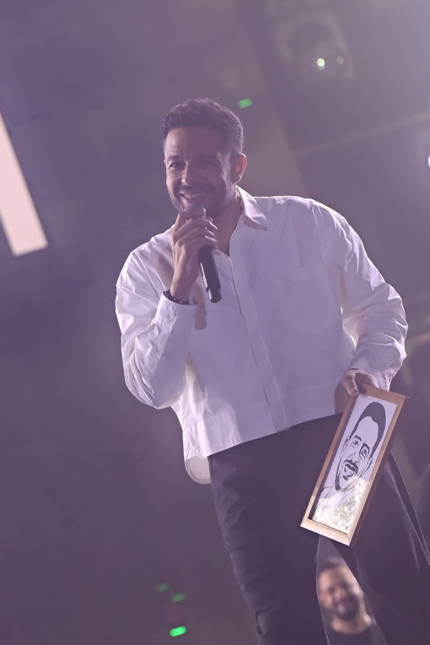 وتلقى حماقي خلال الحفل العديد من الهدايا منها صورة رسمتها إحدي معجباته.