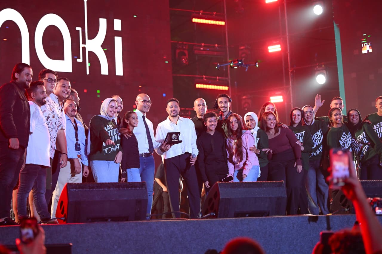 وقبيل ختام الحفل قامت إدارة الأكاديمية البحرية بمشاركه اتحاد الطلاب بتكريم حماقي كأفضل مطرب لعام 2025 .