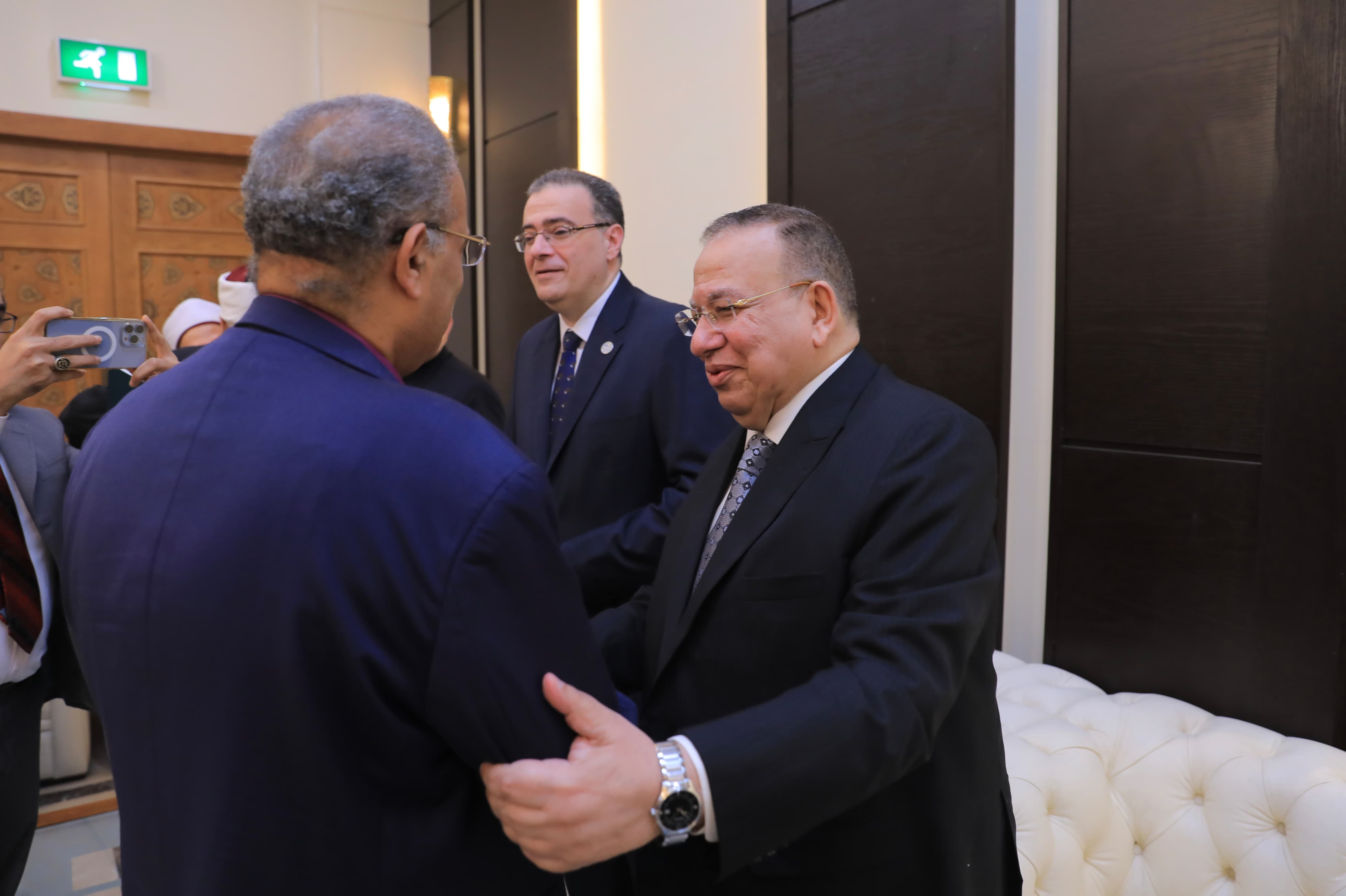 كما حضر كل من الدكتور علي جمعة، عضو هيئة كبار العلماء ومفتي الجمهورية الأسبق، والدكتور نصر فريد واصل، عضو هيئة كبار العلماء ومفتي الجمهورية الأسبق، والدكتور شوقي علام، رئيس اللجنة الدينية بمجلس الشيوخ ومفتي الجمهورية السابق.