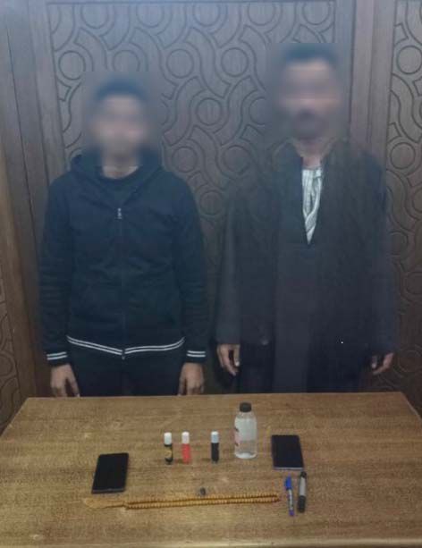 عقب تقنين الإجراءات تم ضبطه بدائرة قسم شرطة كرموز بالإسكندرية وبرفقته عاطل “يعاونه فى إدارة صفحته بمواقع التواصل الإجتماعى”، وبحوزتهما (2 هاتف محمول "بفحصهما فنياً تبين احتوائهما على دلائل تؤكد نشاطهما الإجرامى" الأدوات المستخدمة فى أعمال الدجل) .
