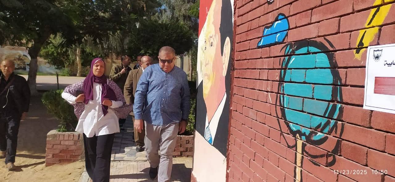 واستهل السكرتير العام جولته بزيارة لجنة مدرسة أم المؤمنين الإعدادية بنات بشارع الجيش والمعدة لاستقبال عدد ٧٠٢٧ ناخبا وناخبة الذين لهم حق التصويت.